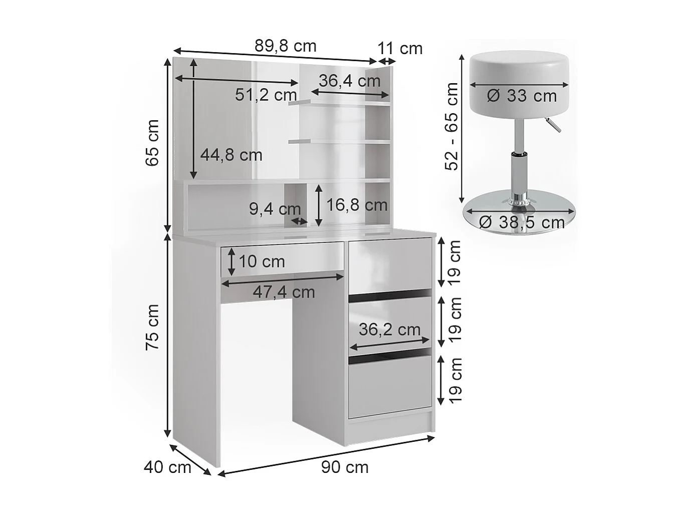 mesa de maquillaje para niños blanco 105x41x117.9 estella