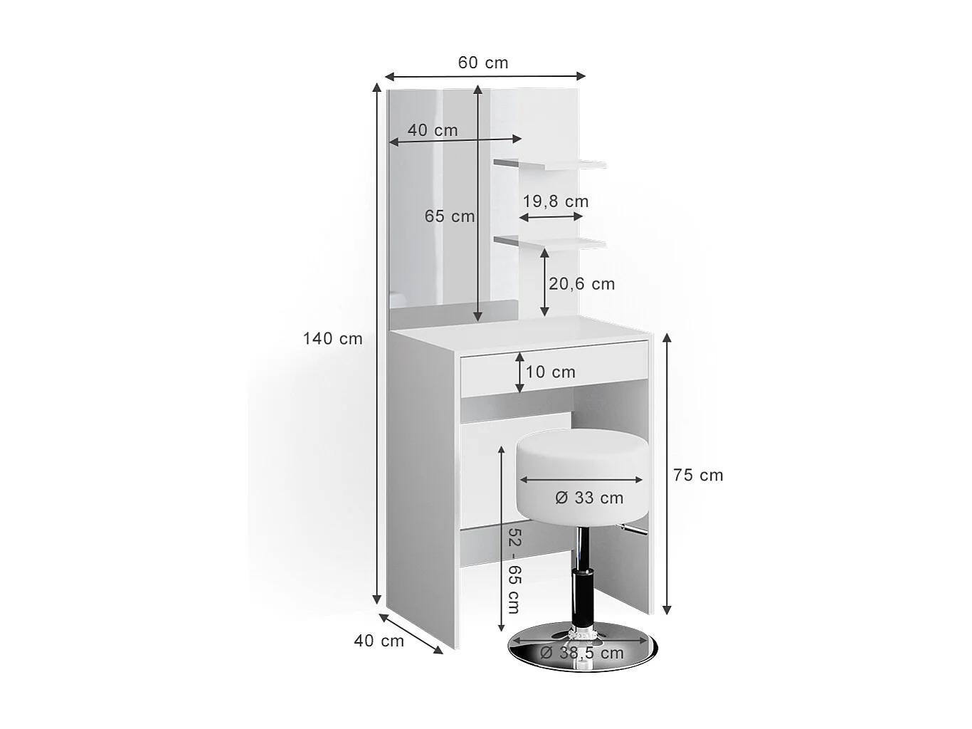 TOCADOR DE MAQUILLAJE CON ESPEJO LED MODERNO LOFT 80 CM
