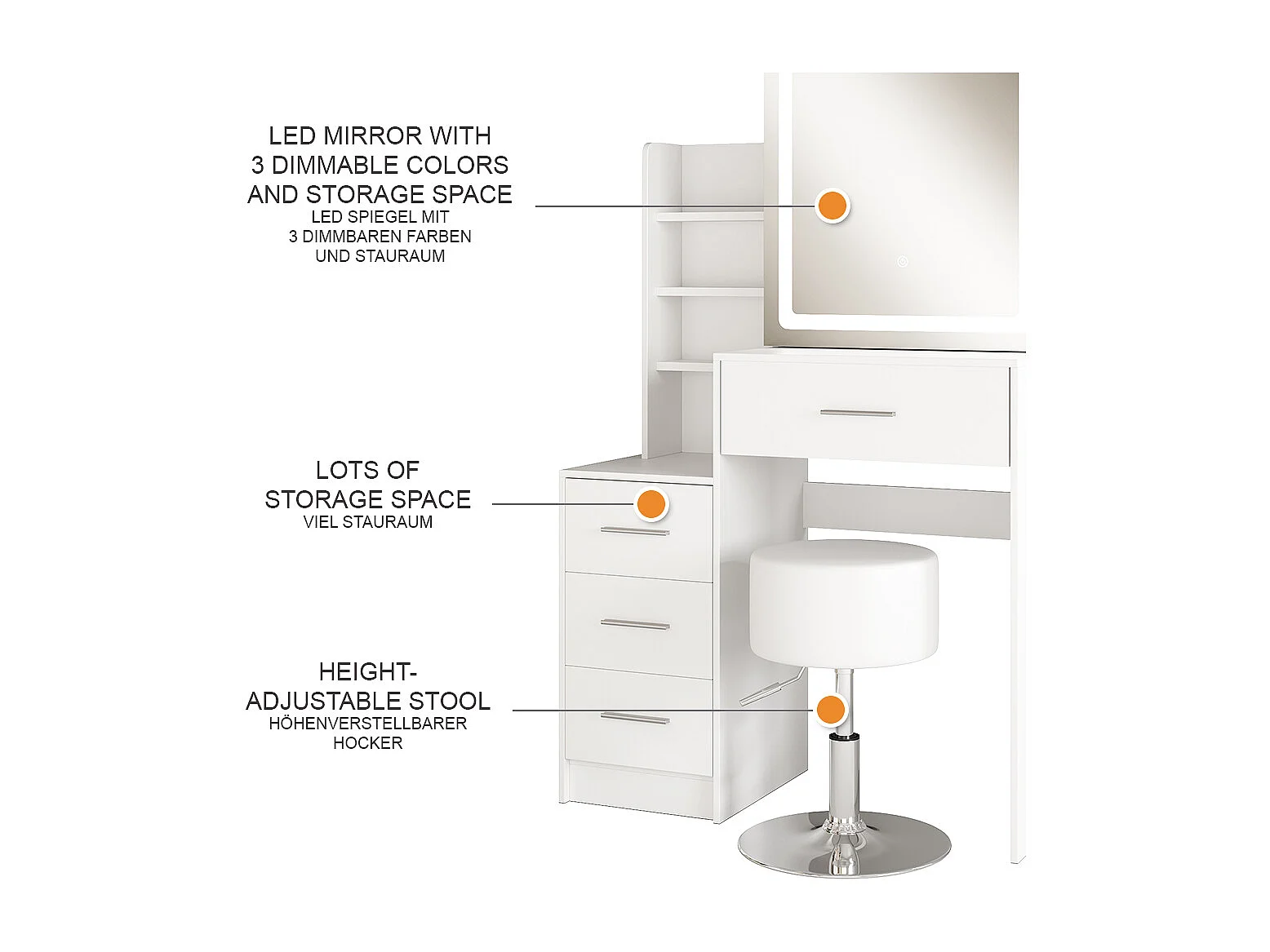 TOCADOR DE MAQUILLAJE CON ESPEJO LED MODERNO LOFT 80 CM