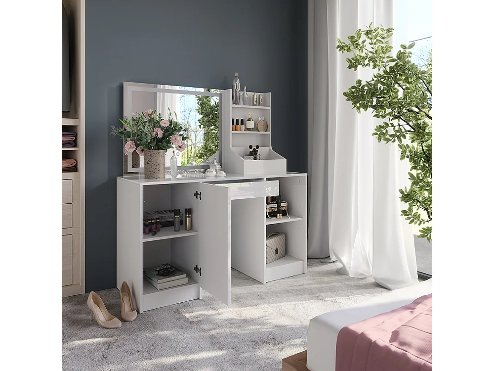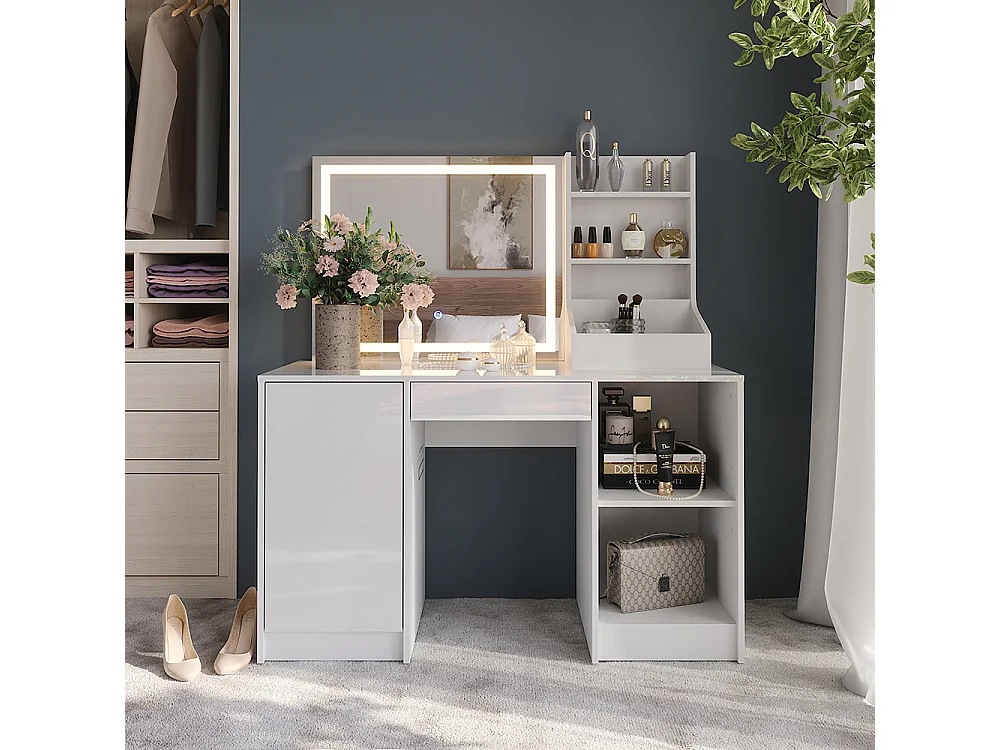 Mesa de maquillaje blanco/blanco alto brillo 119.8x50.1x76 sherry