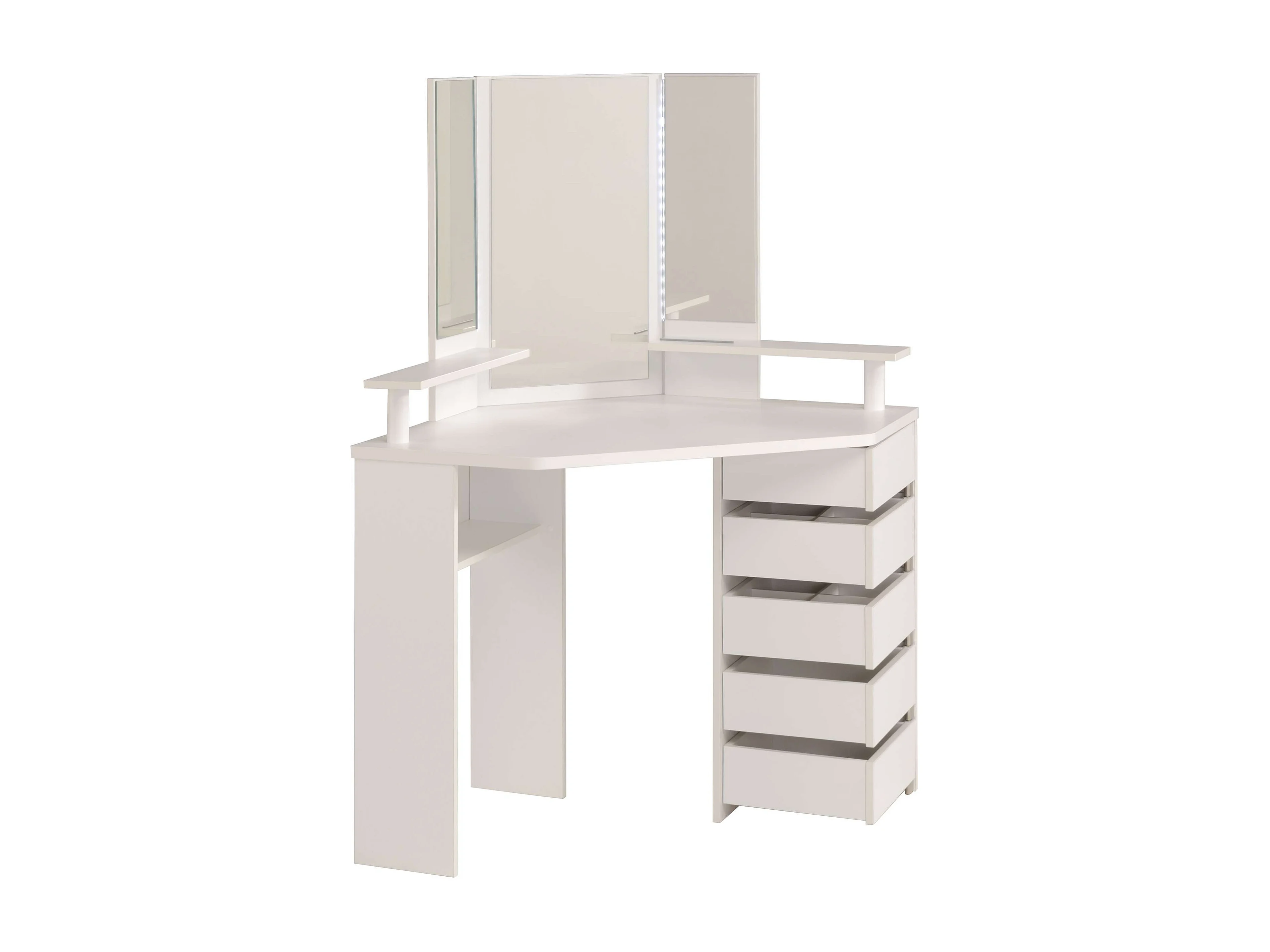 Tocador California Contemporáneo Blanco con Espejo Led y 5 cajones 142x61x114 cm