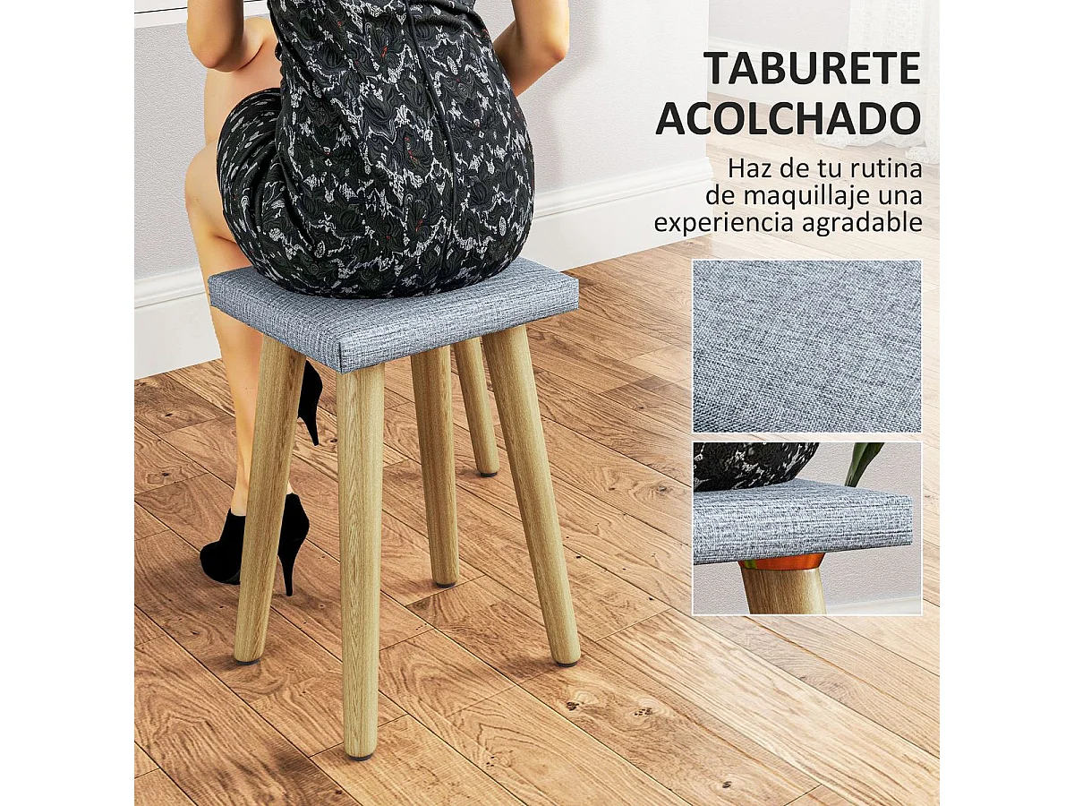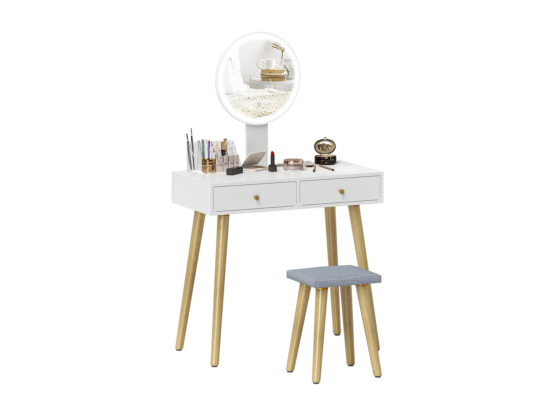 Tocador Chloe Homcom espejo LED + 2 cajones + taburete blanco 133x80x43 cm