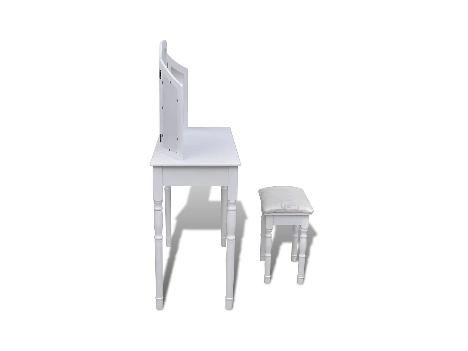 Tocador con espejo 3 en 1 taburete y 2 cajones blanco ES287860