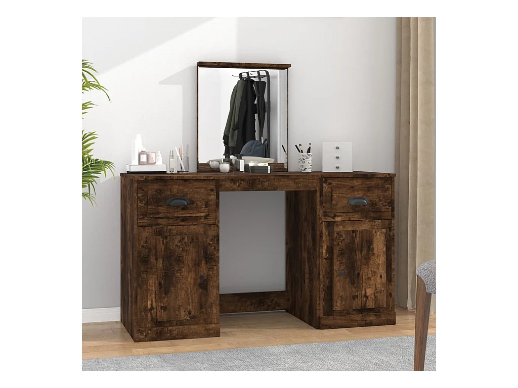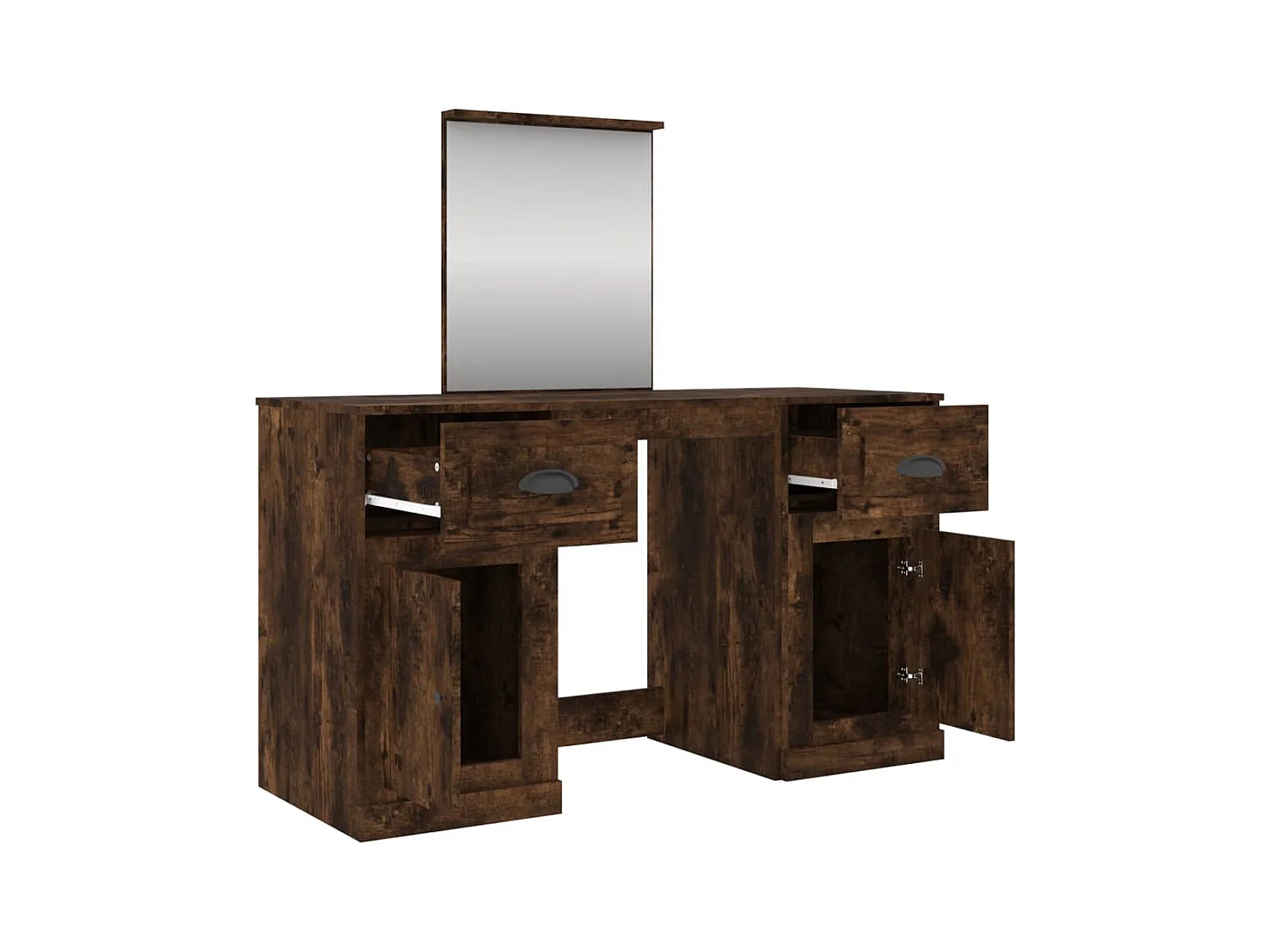 Tocador con espejo color roble ahumado 130x50x132,5 cm