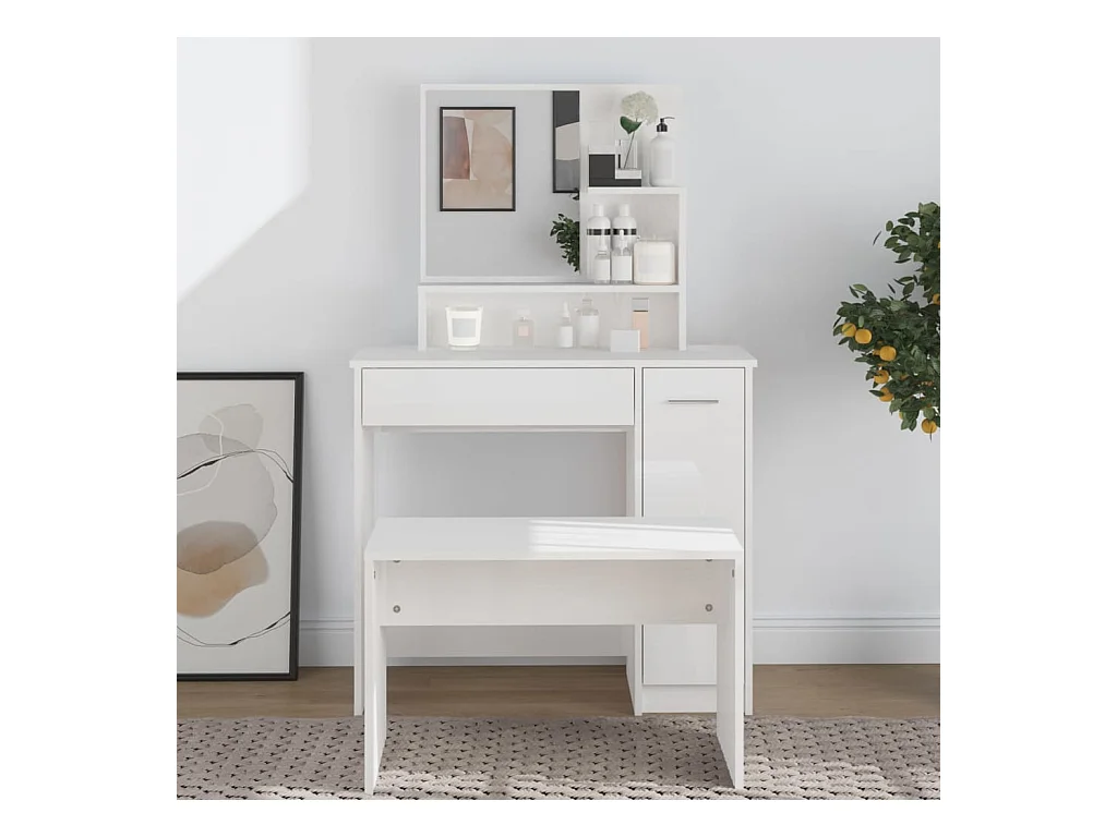Juego de tocador blanco brillo 86,5x35x136 cm