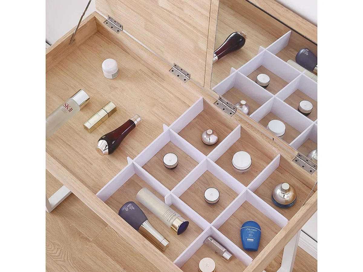 TOCADOR CON ESPEJO Y CAJONES BLANCO MAQUILLAJE GLAMOUR ESCANDINAVO 100 CM
