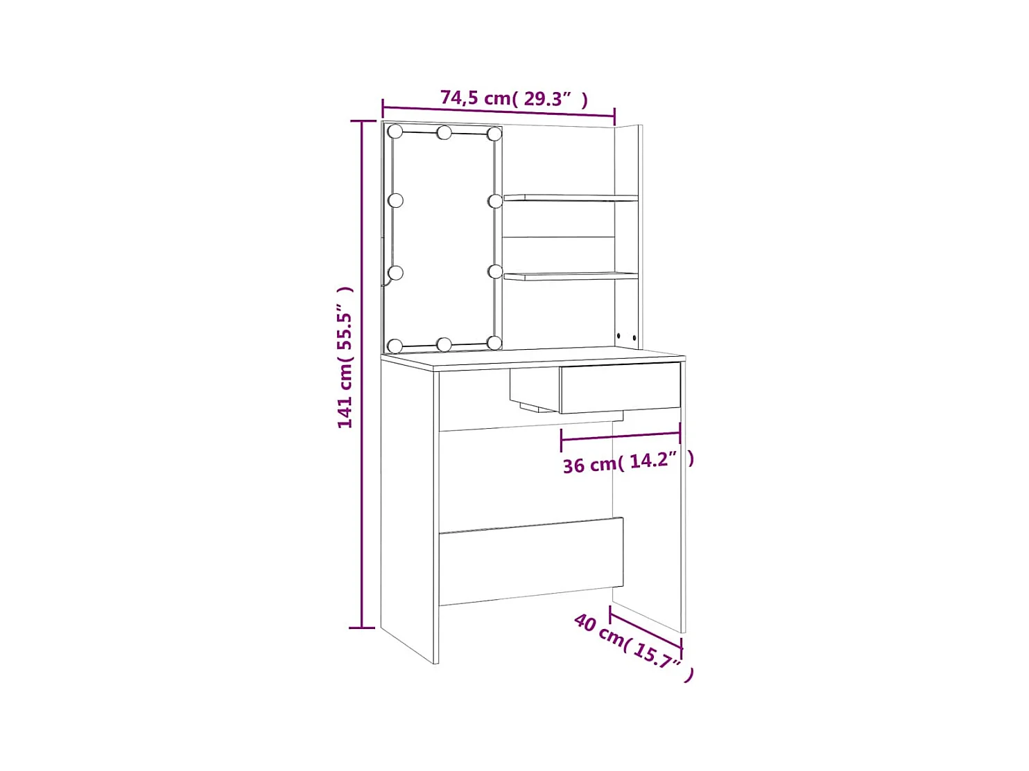 Tocador con LED blanco 74,5x40x141 cm ES231458