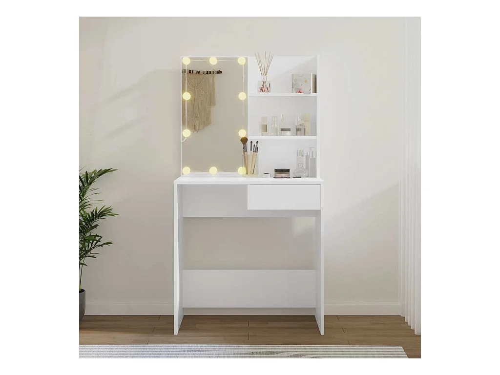 Juego de tocador con LED madera contrachapada blanco ES914369