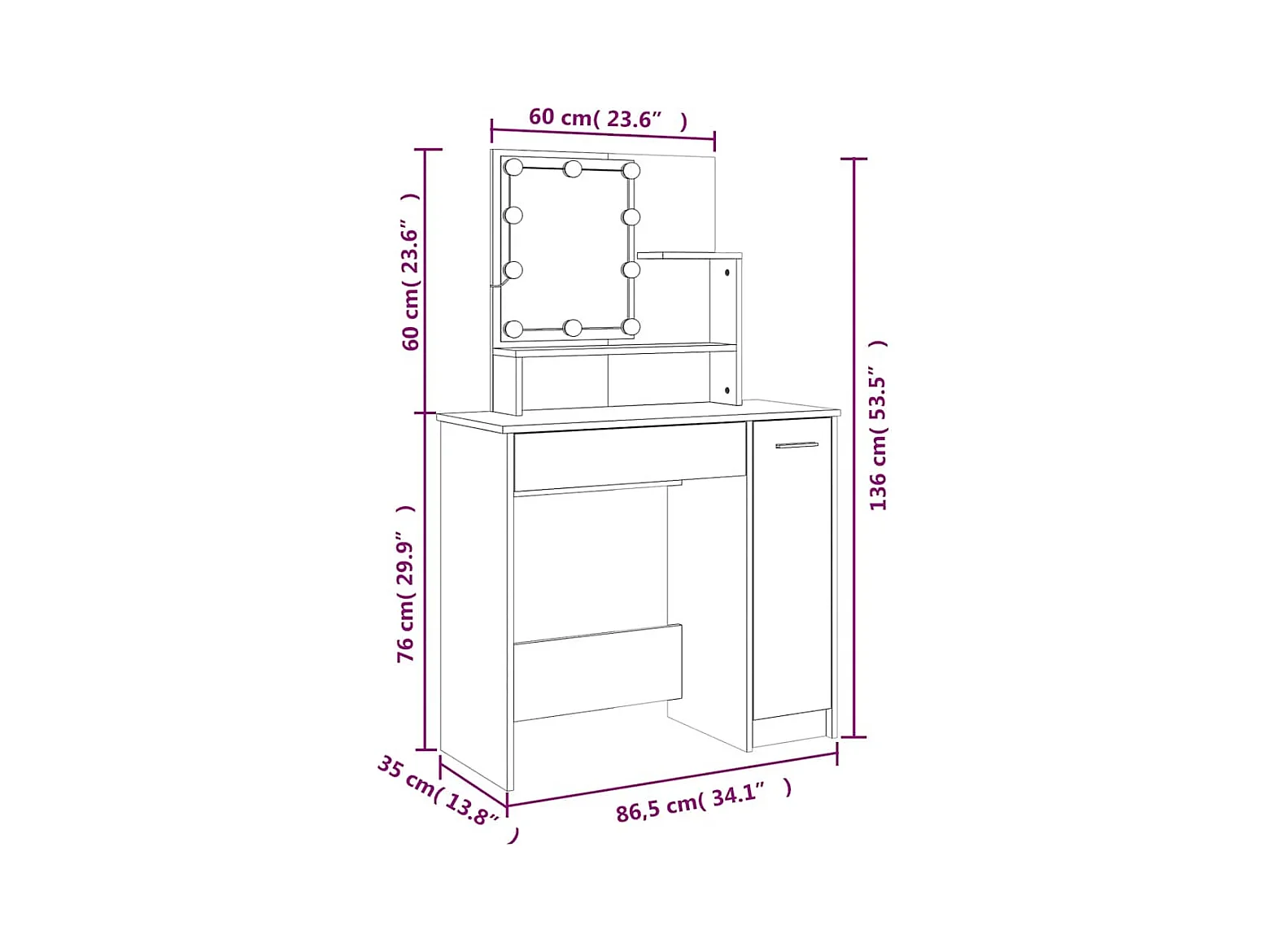 Tocador con LED blanco 86,5x35x136 cm ES974817
