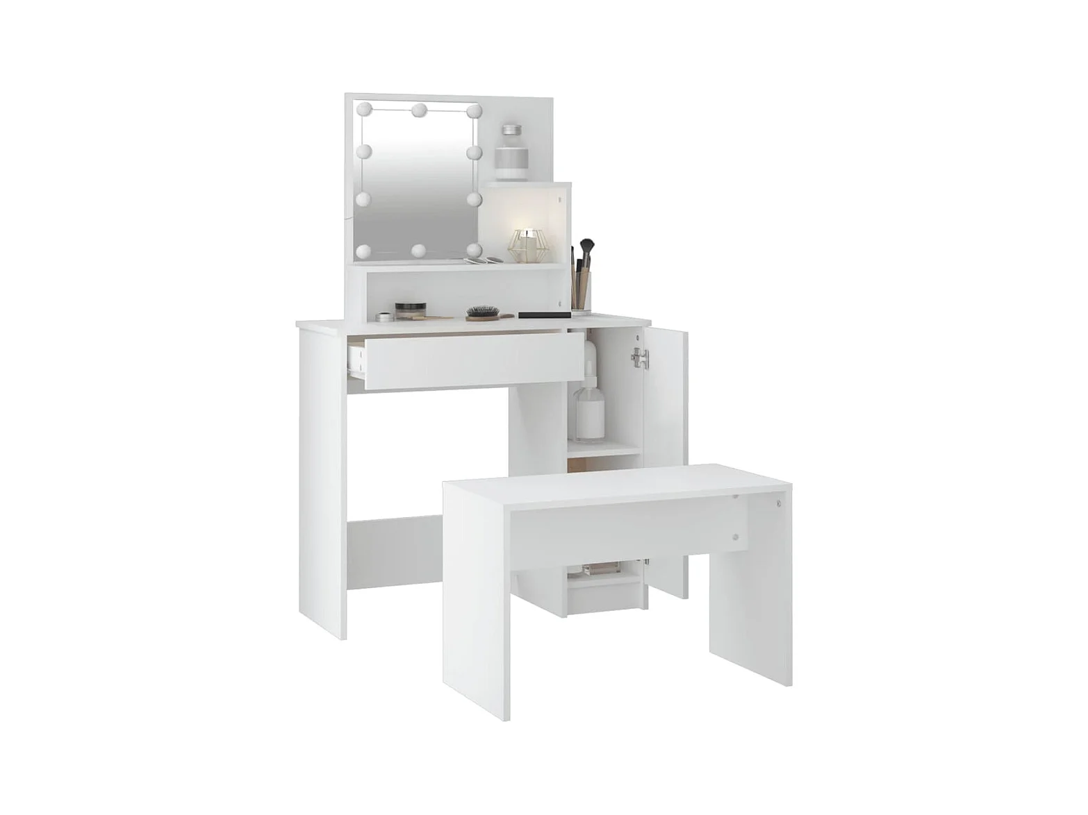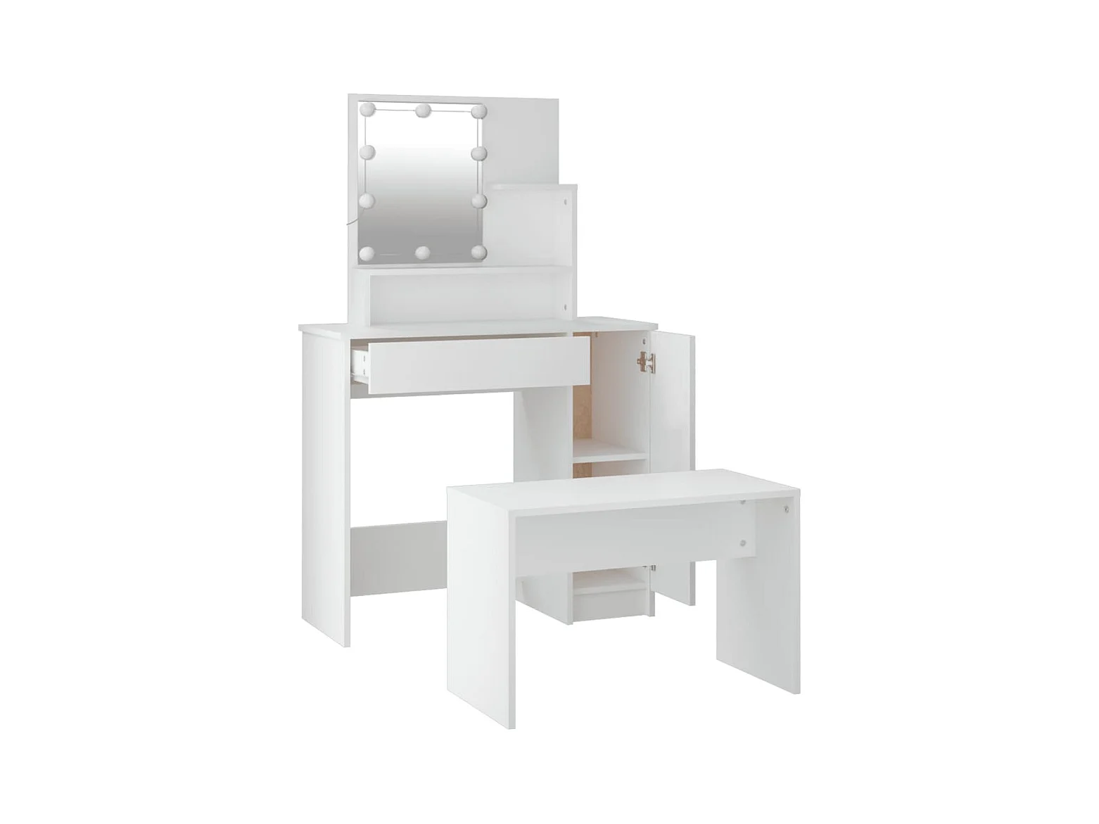 Conjunto de tocador LED de madera de ingeniería blanca brillante