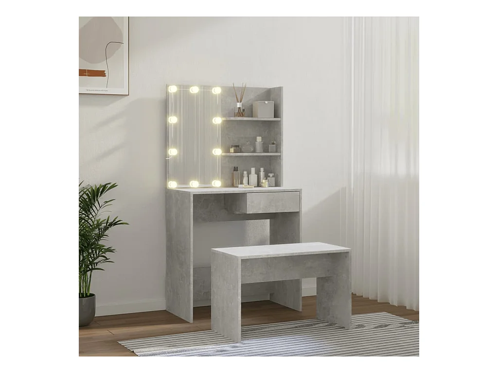Tocador y taburete gris hormigón 60x40x113,5 cm
