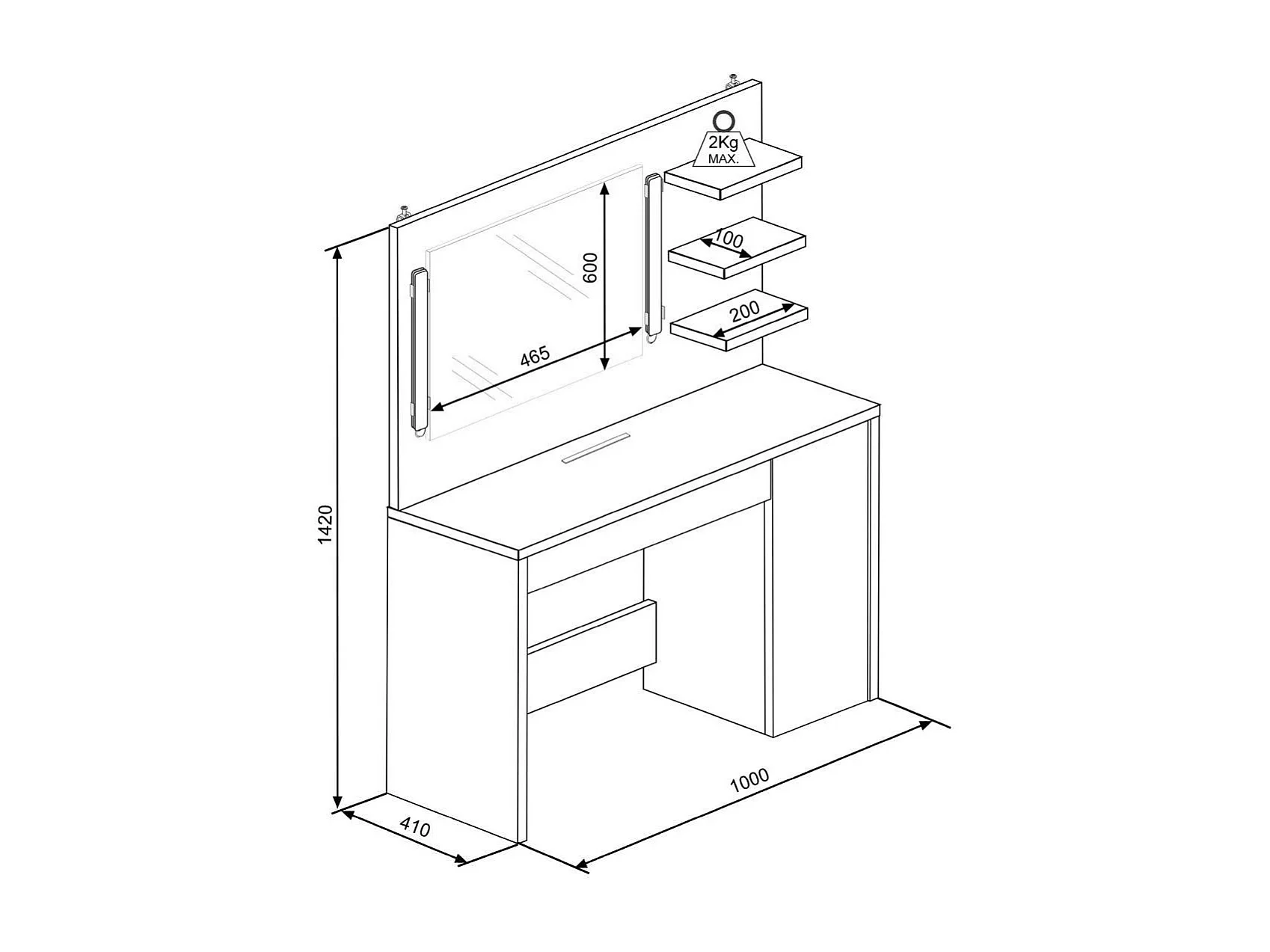 Tocador de 142x100x41 cm con espejo con luces LED regulables en color blanco y roble Grace