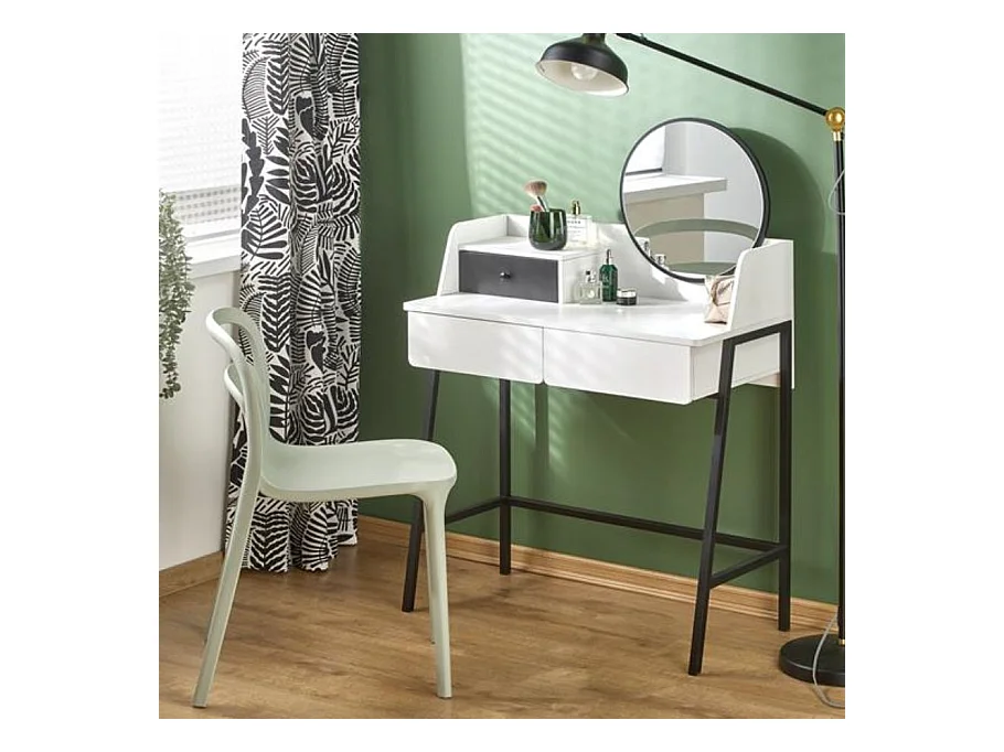 Tocador de diseño blanco y negro con espejo y 3 cajones Morning