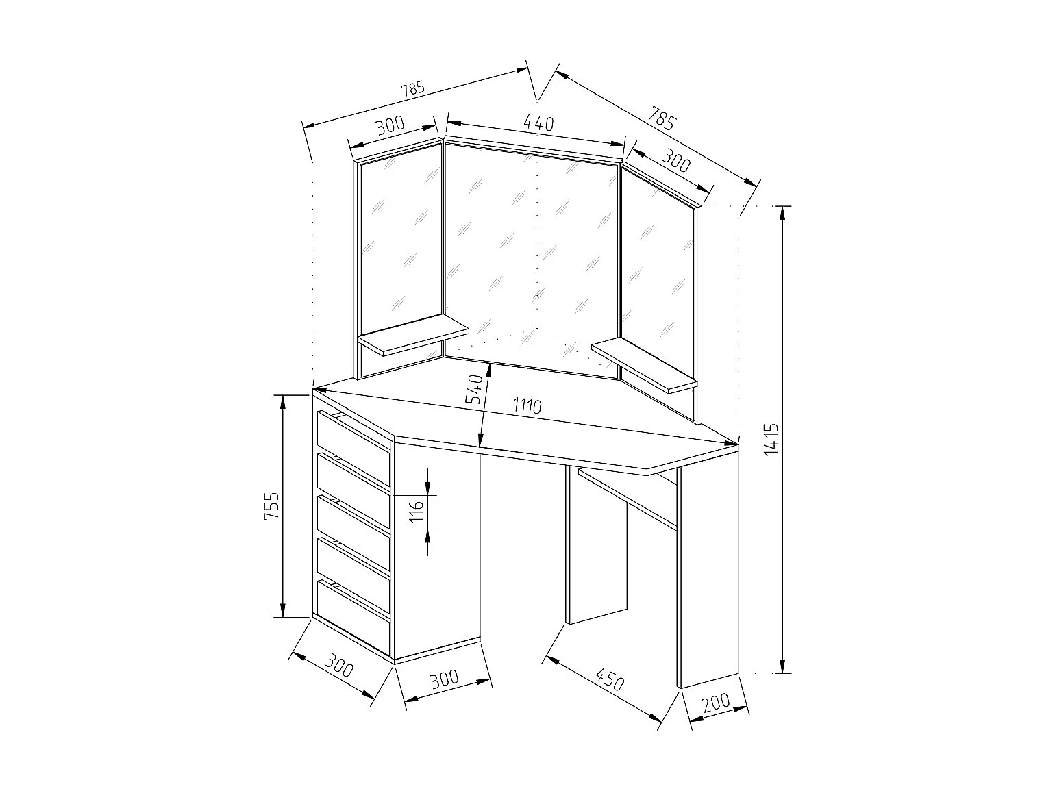 Tocador de esquina blanco/sonoma 110x54x141.5 arielle
