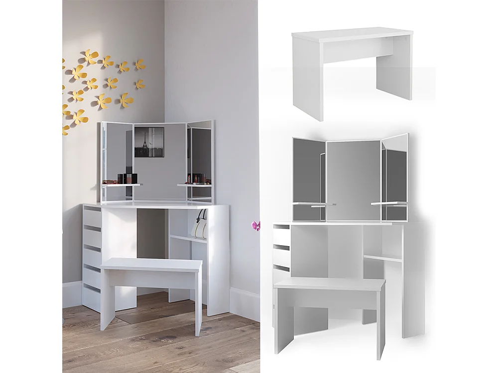 Tocador de esquina blanco/sonoma 110x54x141.5 arielle