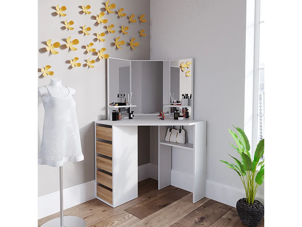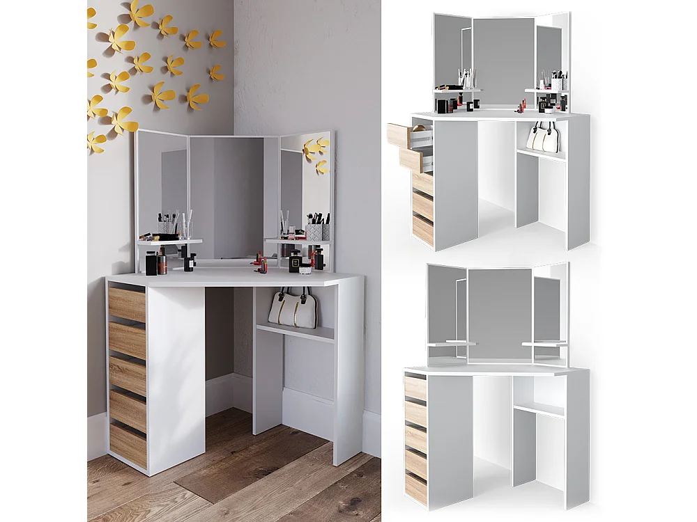 Tocador de esquina blanco/sonoma 110x54x141.5 arielle