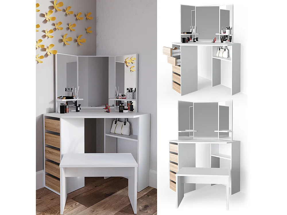 Tocador de esquina blanco/sonoma 110x54x141.5 arielle