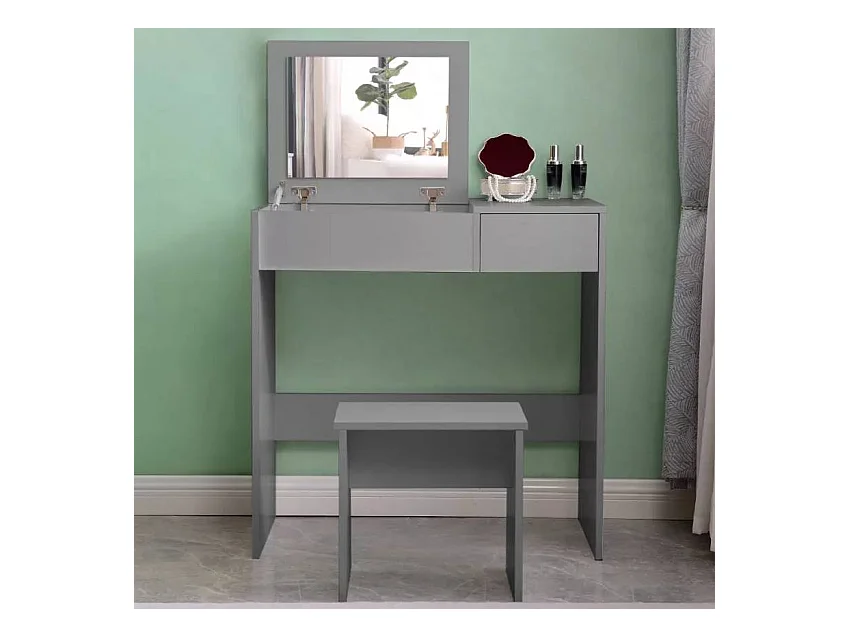 Juego de tocador con taburete 75 x 69 x 140 cm gris 02_0006272