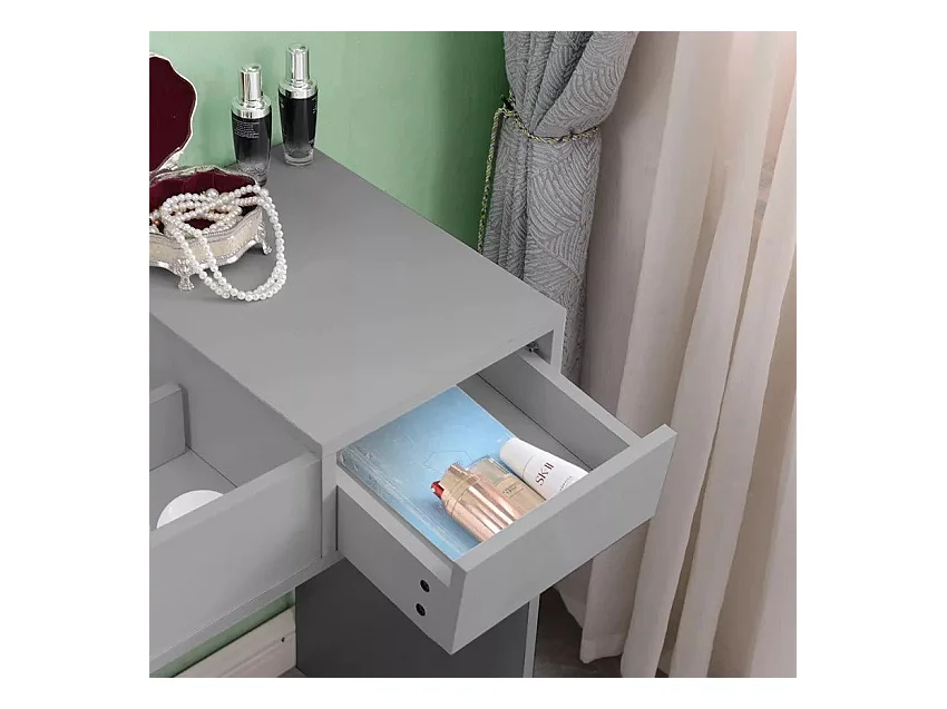 Tocador de maquillaje ahorra espacio gris Nicole Grey