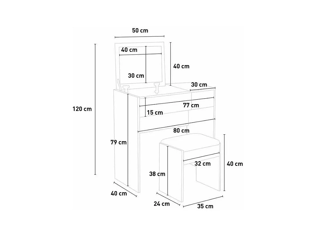 Tocador y taburete gris hormigón 60x40x113,5 cm