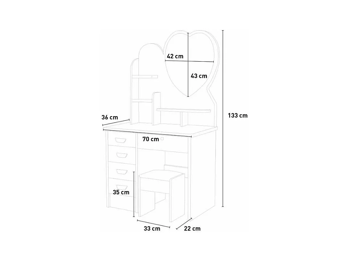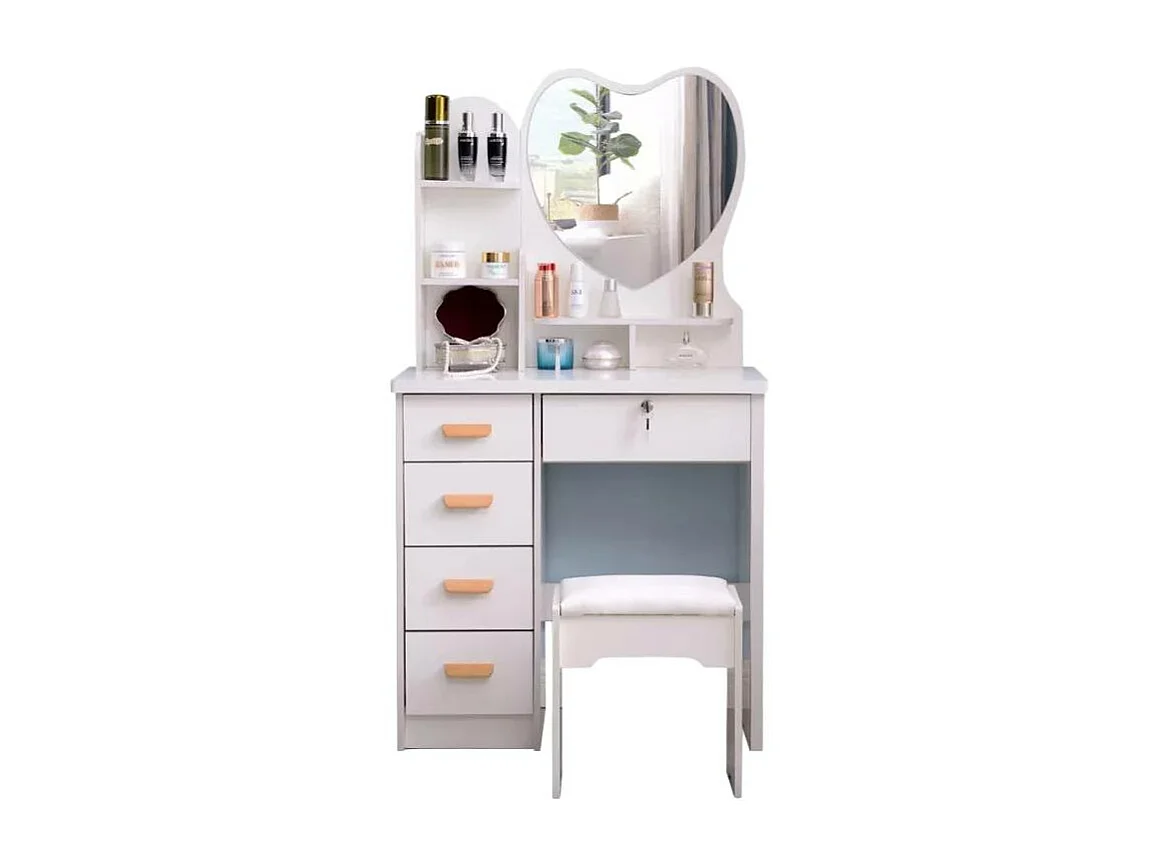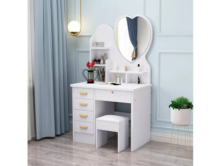 Tocador de maquillaje con espejo de corazón taburete dormitorio Clara
