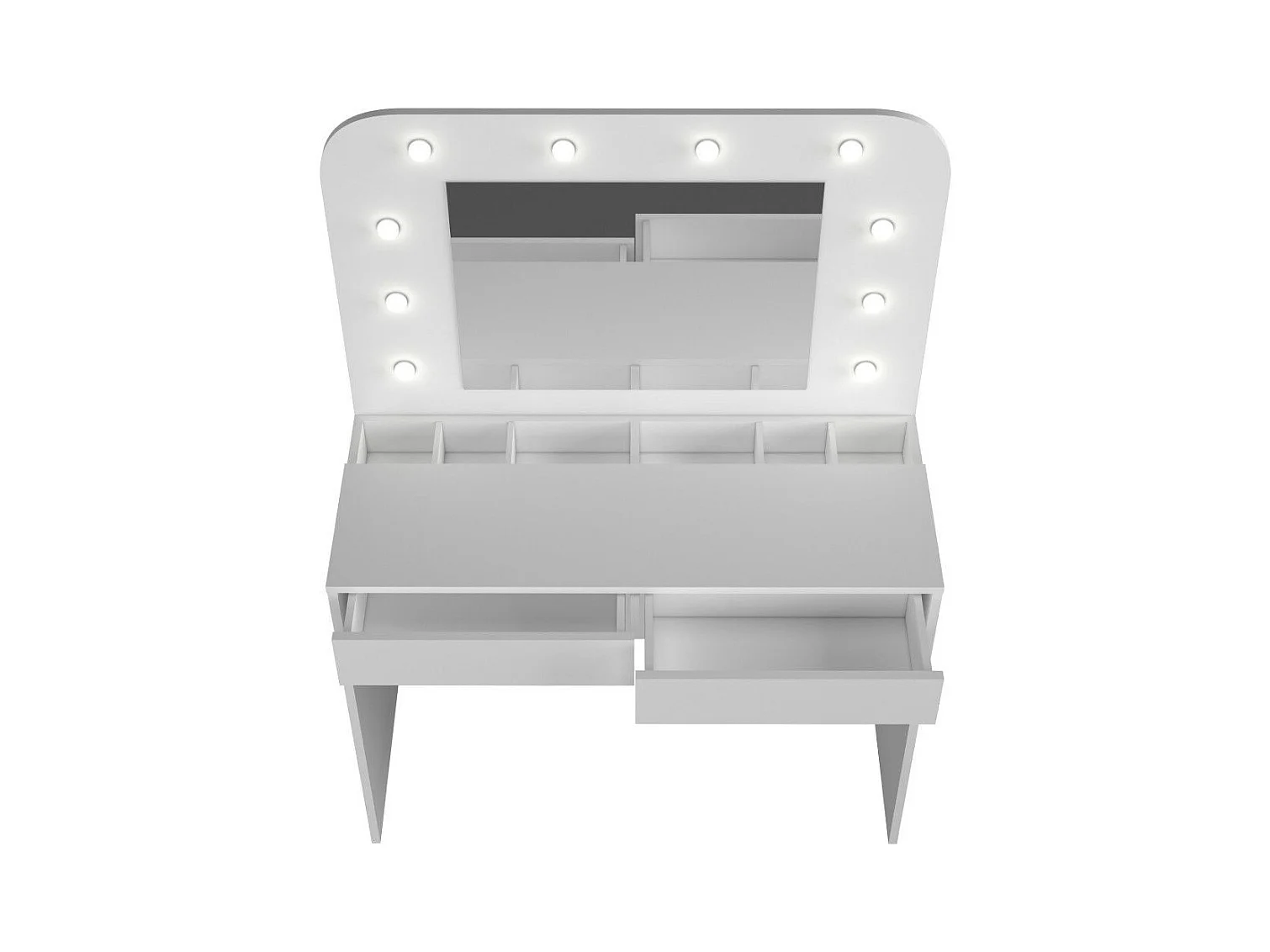 Tocador con espejo LED - 100 x 40 x 78 cm - con 2 cajones + 2 puertas - sin taburete - aglomerado - blanco