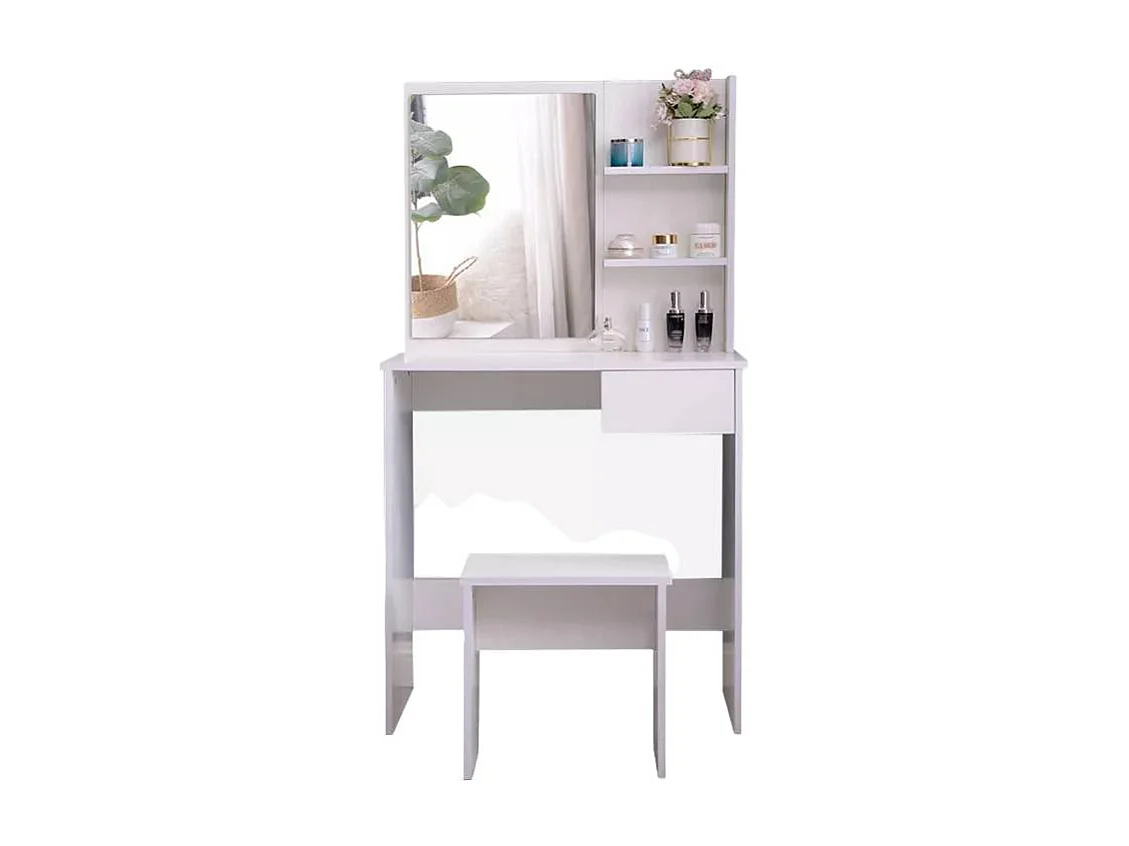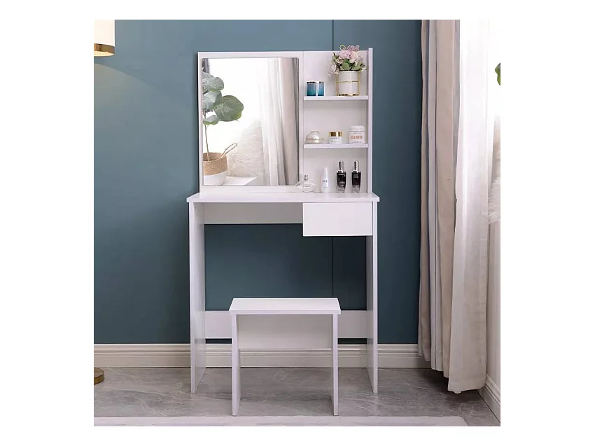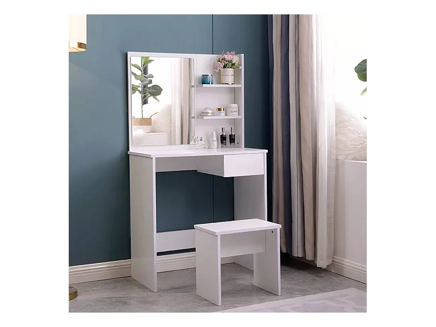 Tocador de maquillaje móvil con espejo cajón y taburete Mayca
