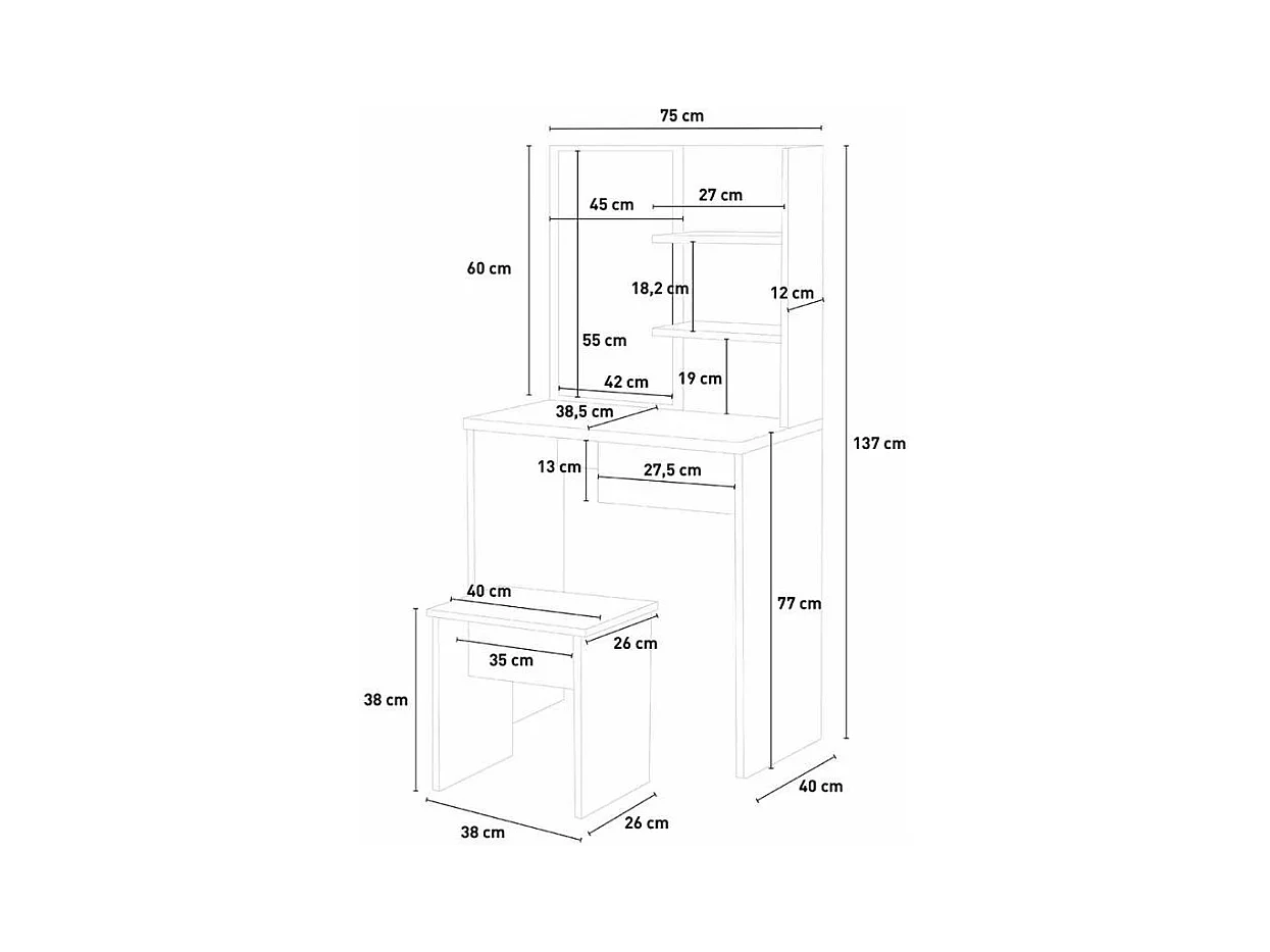 Tocador con espejo + 2 cajones y taburete de maquillaje blanco ML-DESIGN