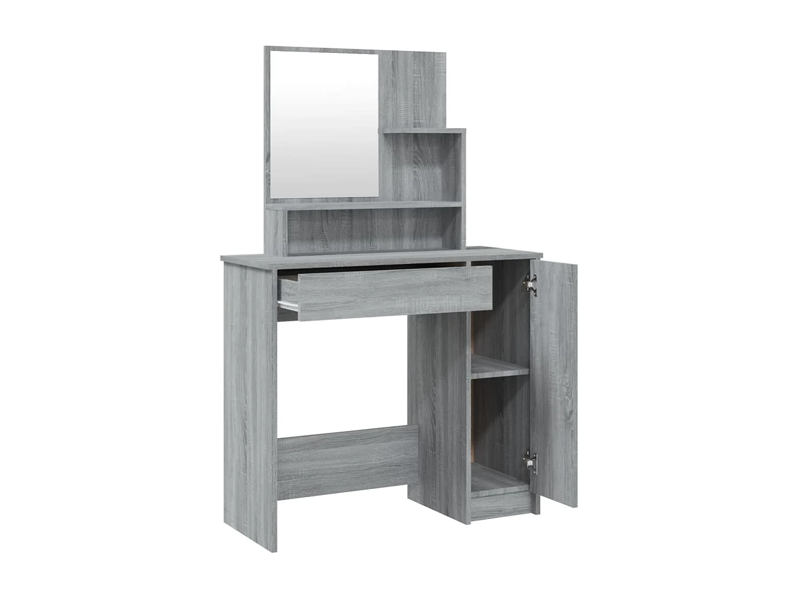 Tocador con espejo color gris sonoma 86,5x35x136 cm