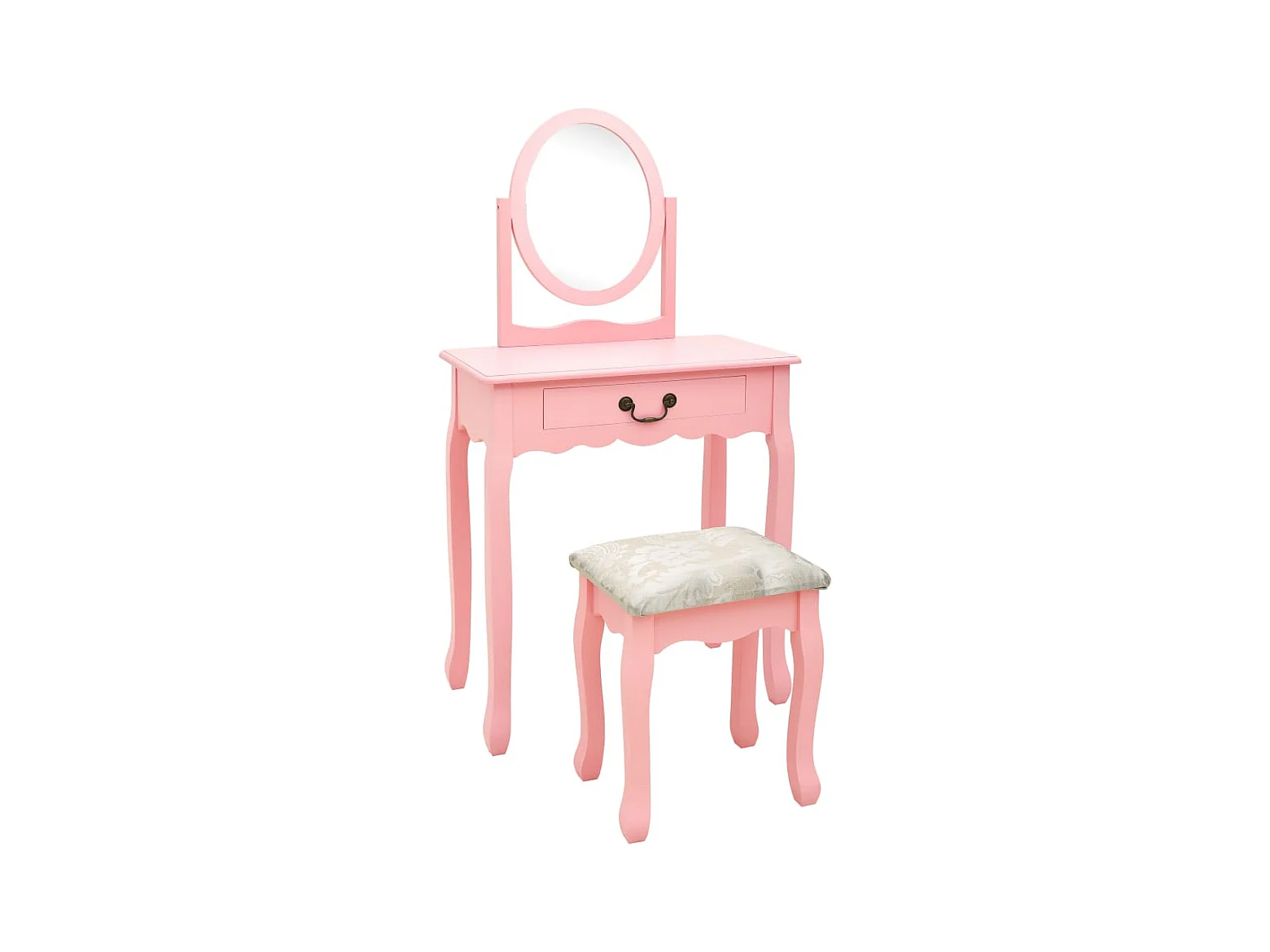 Tocador mesa de maquillaje y taburete 65 x 36 x 128 cm rosa madera MDF 02_0006328