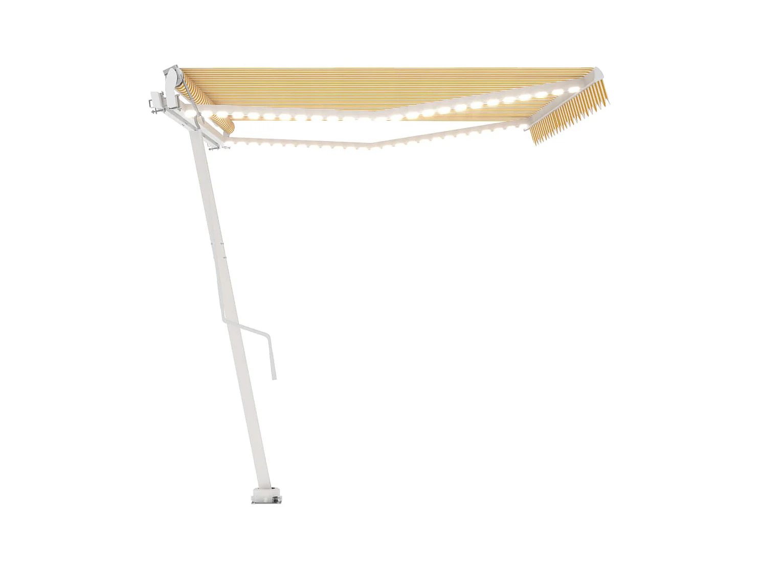 Toldo de pie automático amarillo y blanco 500x300 cm
