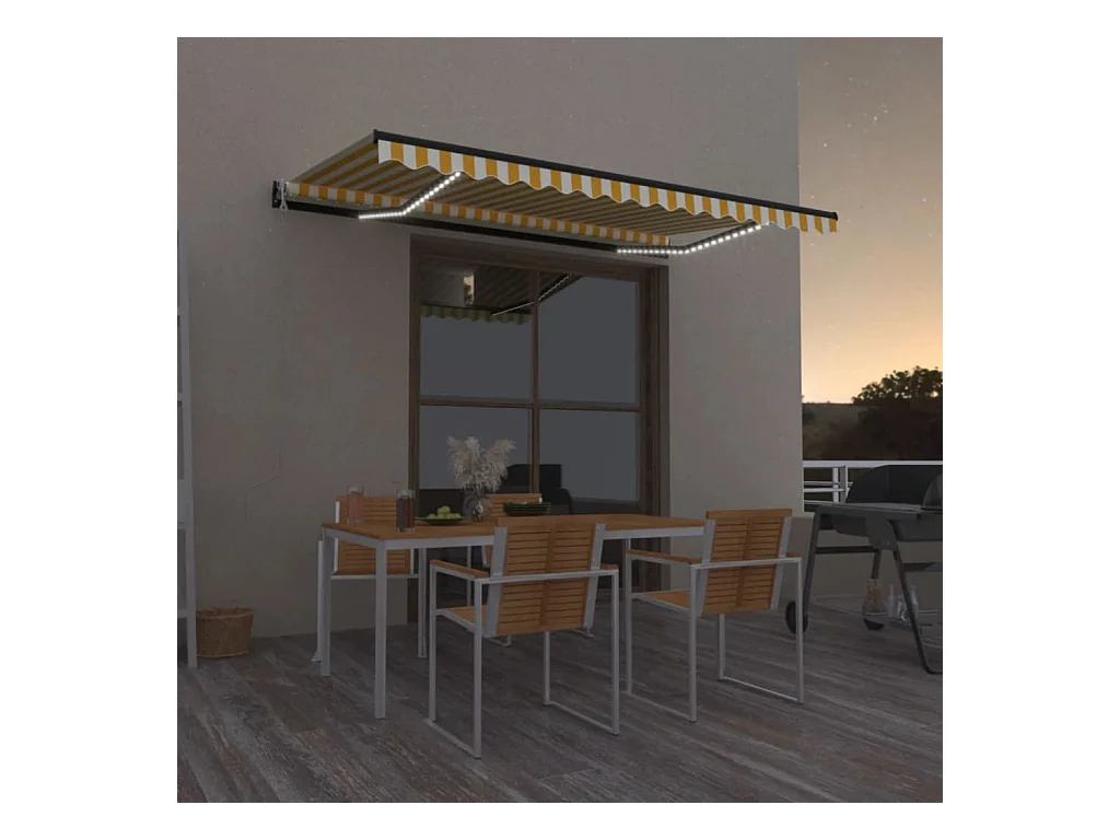 Toldo automático sensor de viento LED 450x350cm Amarillo y blanco