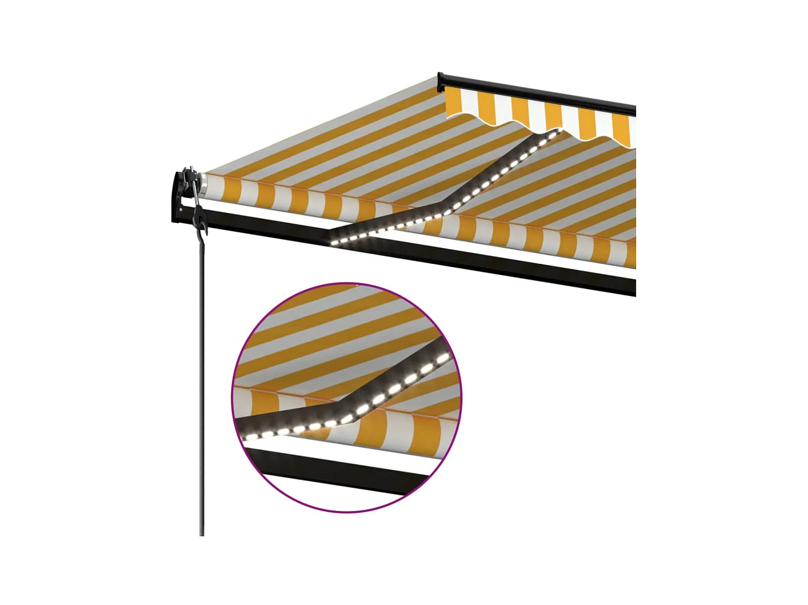 Toldo automático con sensor de viento LED 600x350cm Amarillo y blanco