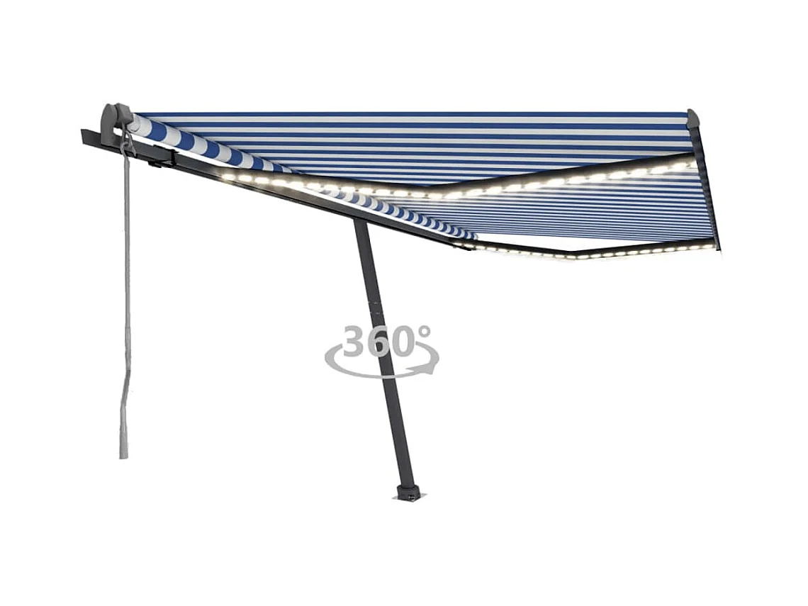 Toldo automático sensor viento LED 450x350 Azul y blanco
