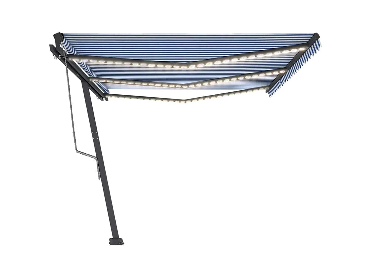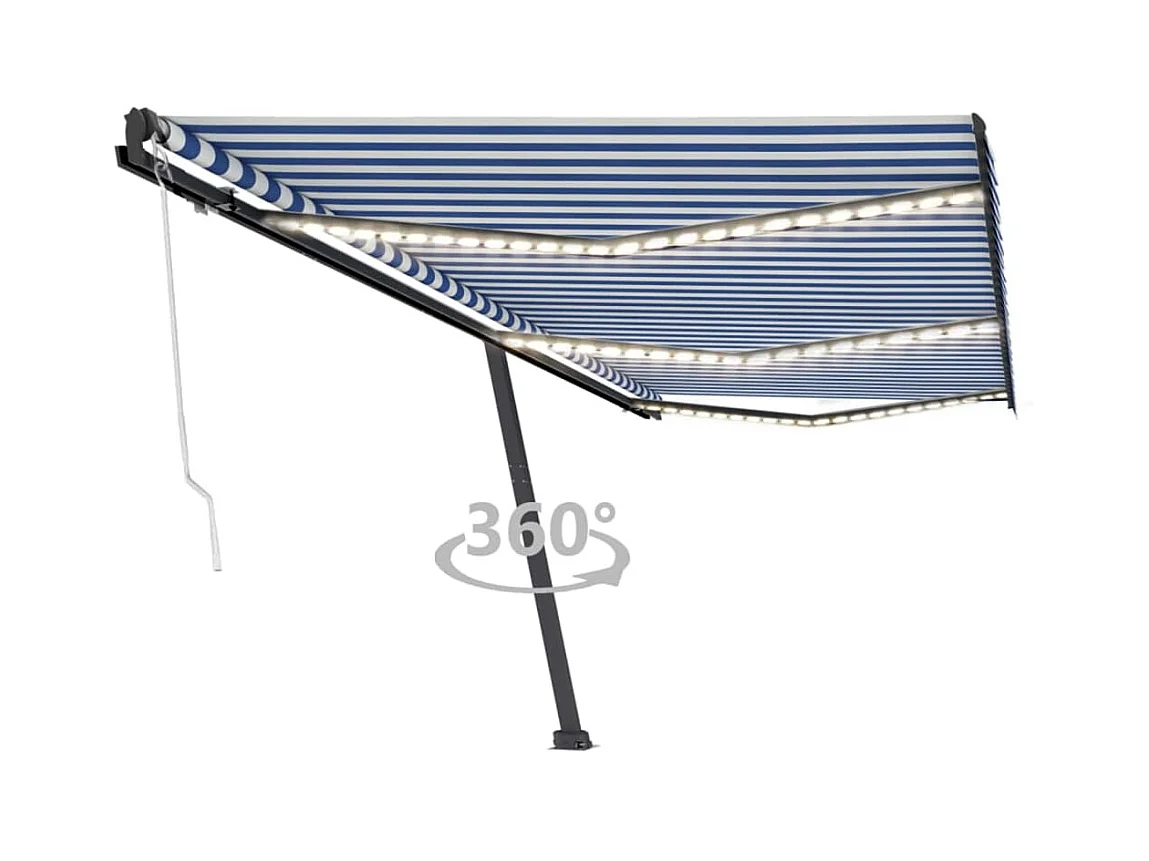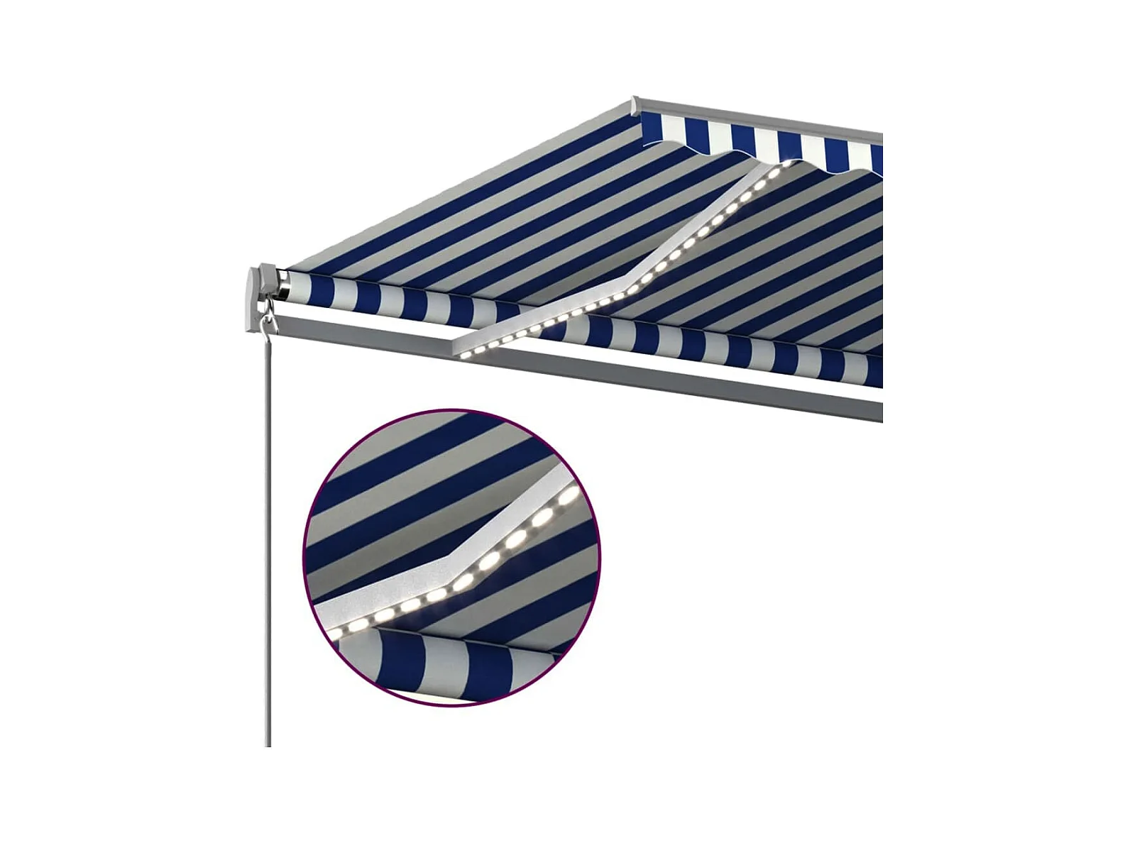 Toldo automático con sensor de viento LED 600x350 Azul y blanco