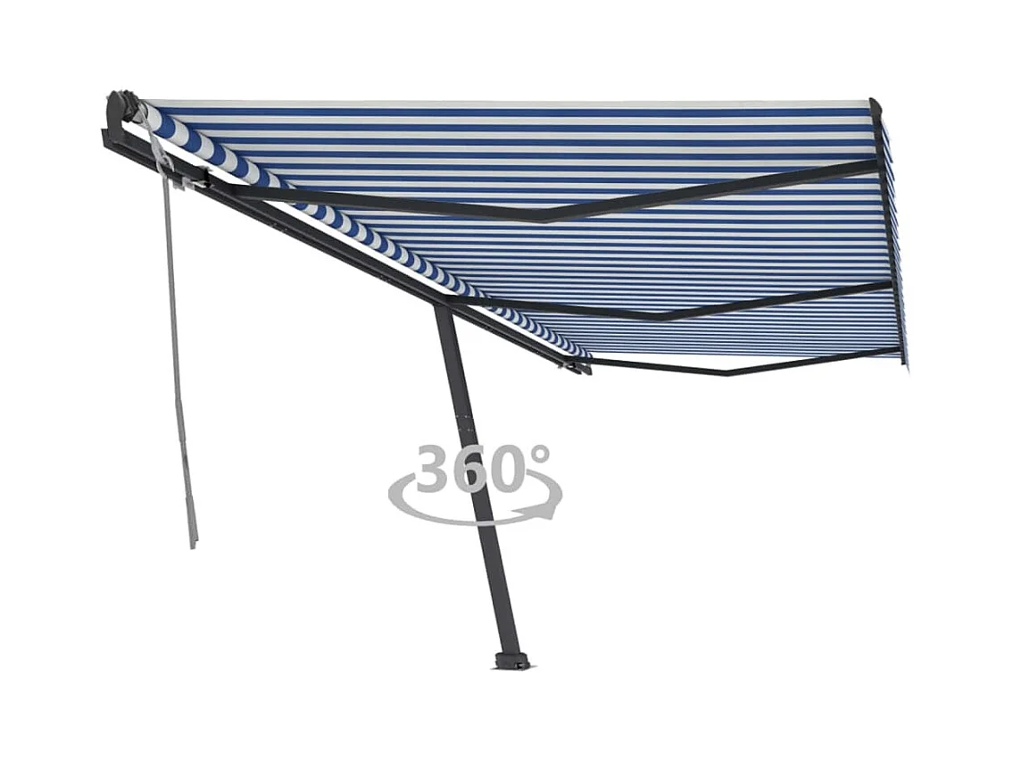 Toldo de pie retráctil manual azul y blanco 600x300 cm