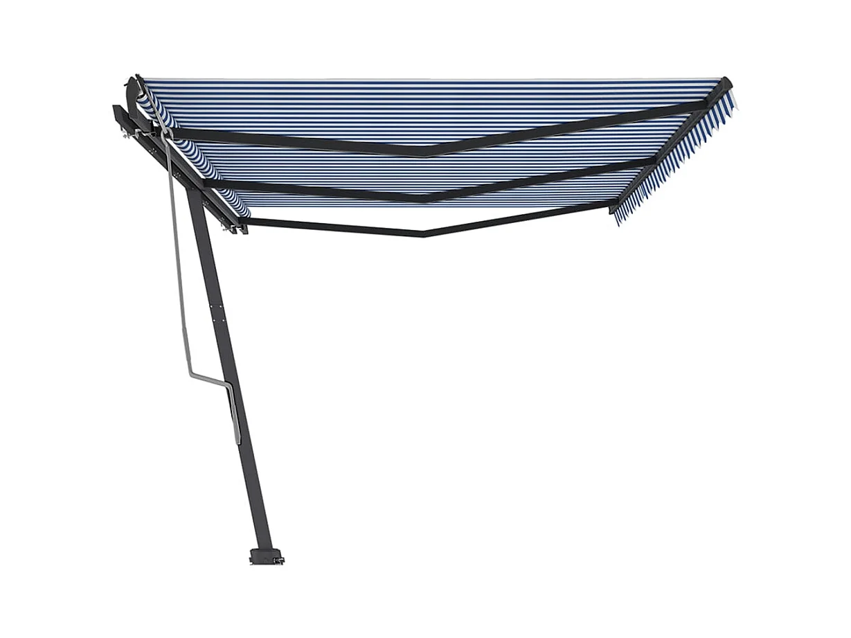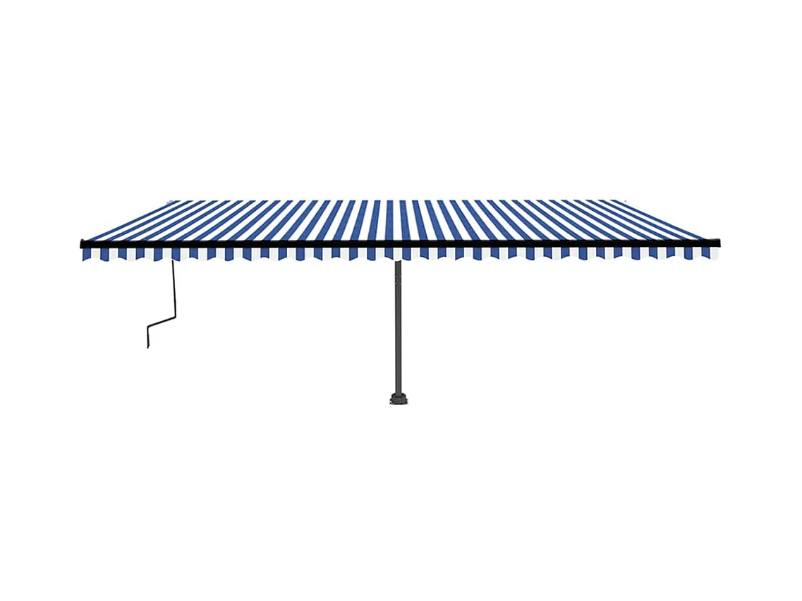Toldo de pie retráctil manual azul y blanco 600x350 cm