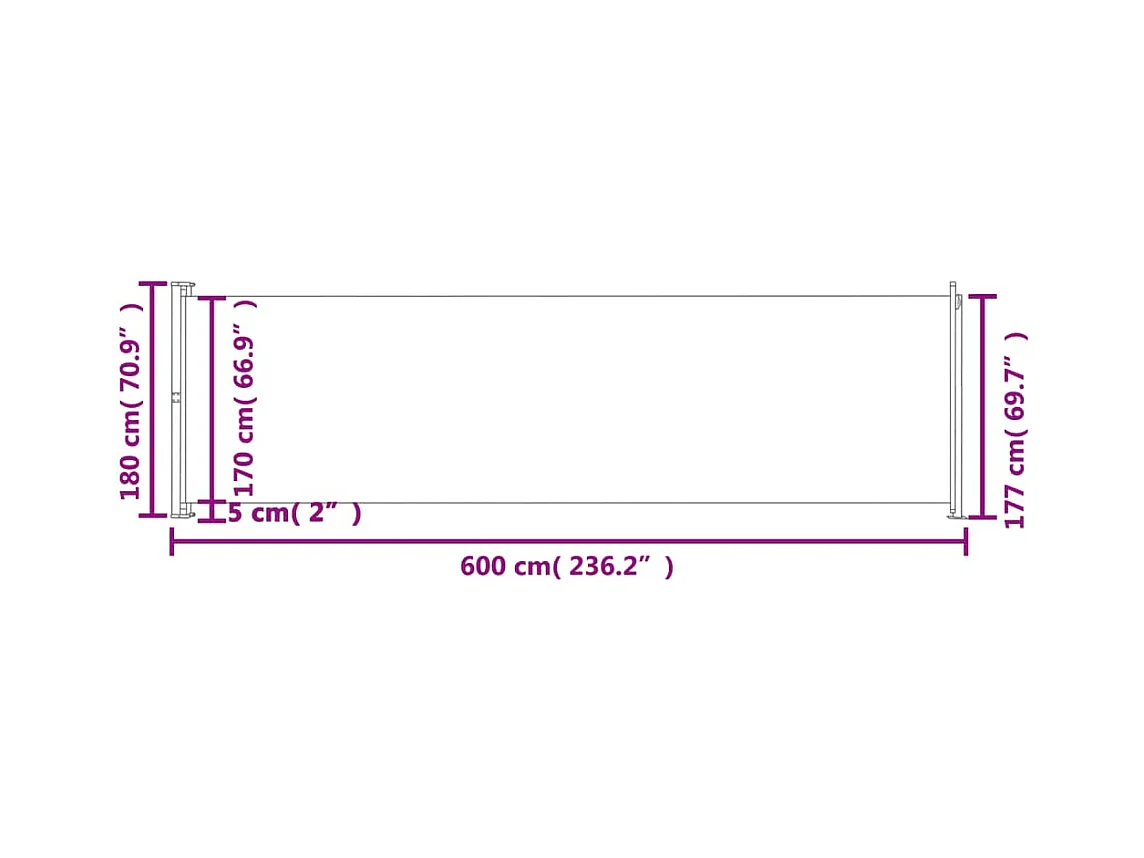 Toldo lateral retráctil de jardín marrón 180x600 cm ES96706