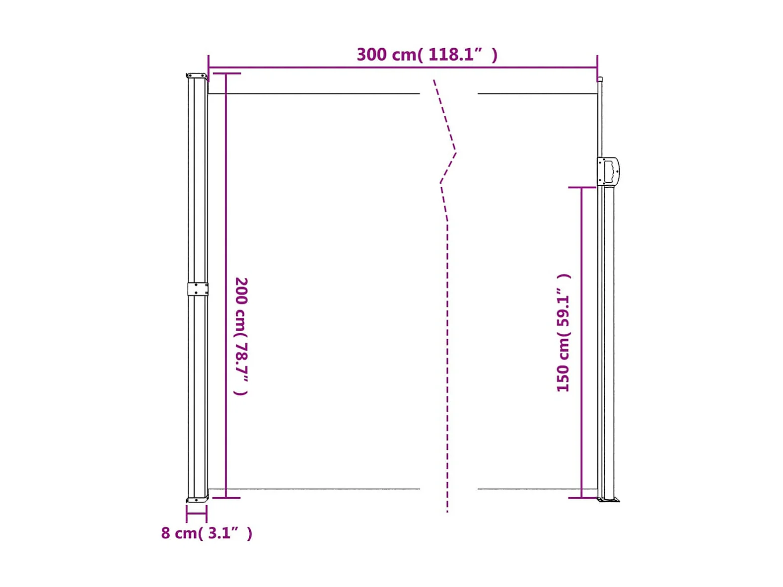 Toldo de terraza lateral retráctil 100 x 300 cm Gris