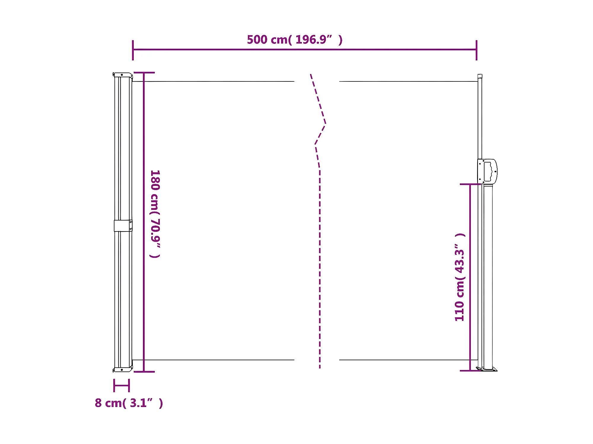 Toldo lateral retráctil beige 180x500 cm