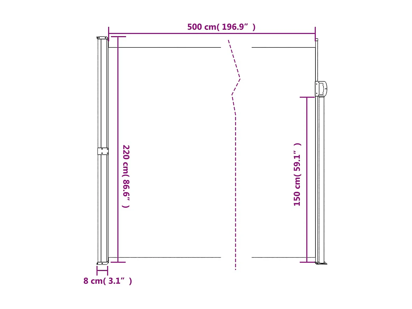 Toldo lateral retráctil beige 220x500 cm