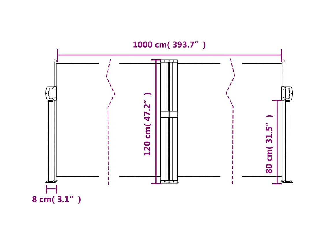 Toldo lateral retráctil blanco 120x600 cm