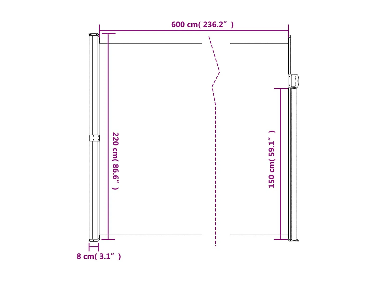 Toldo lateral retráctil blanco 220x600 cm