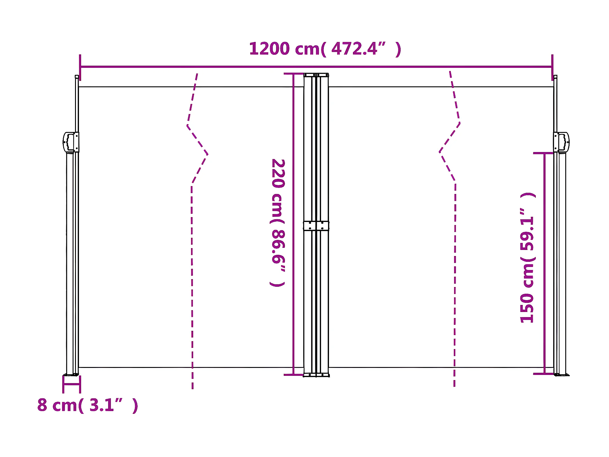 Toldo lateral retráctil gris antracita 220x600 cm