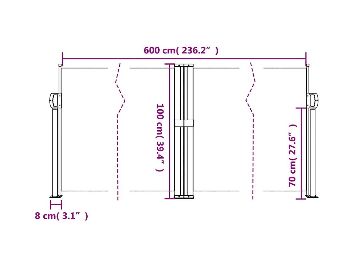 Toldo lateral retráctil marrón 100x600 cm ES42197