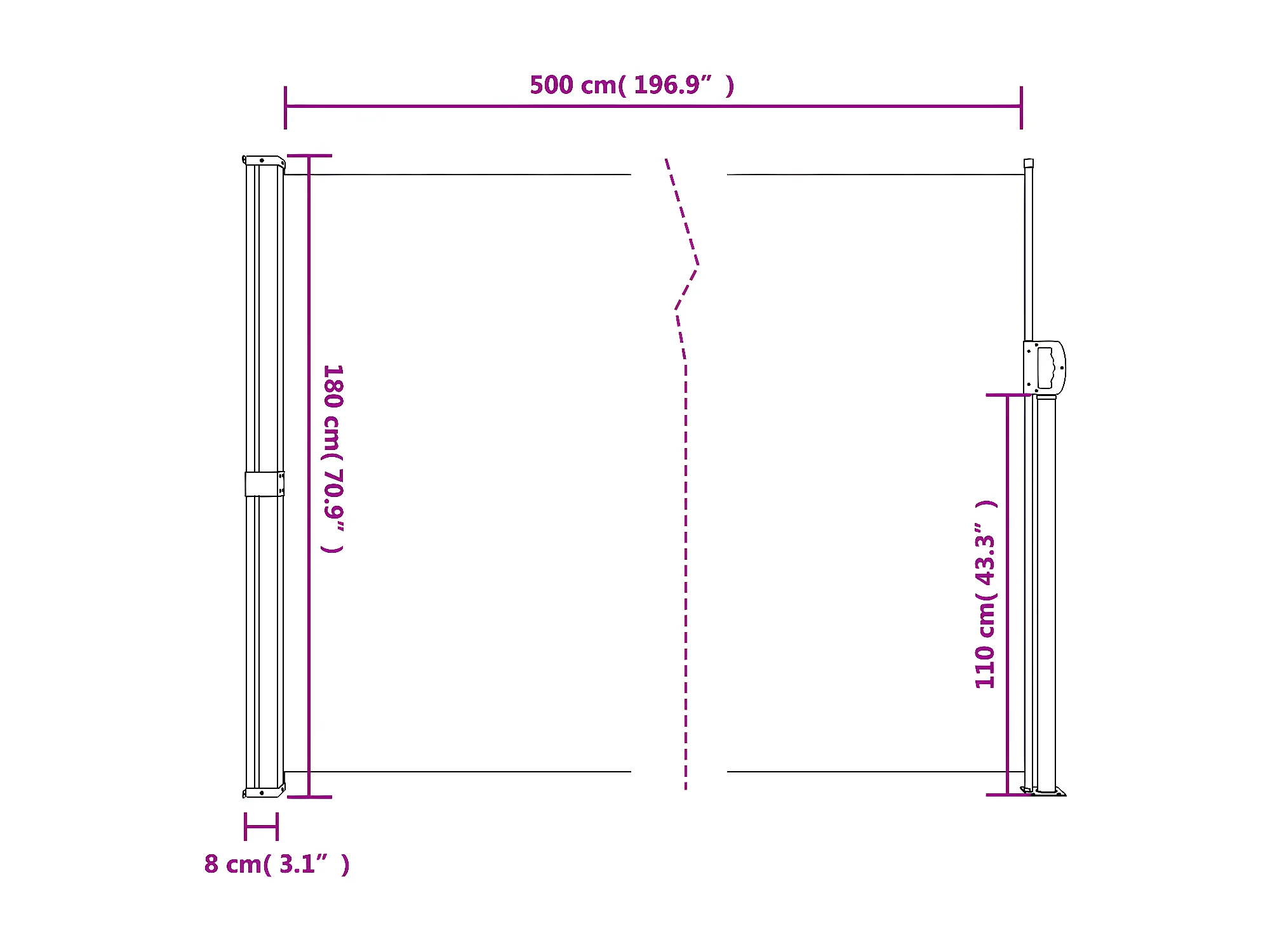 Toldo lateral retráctil negro 180x500 cm