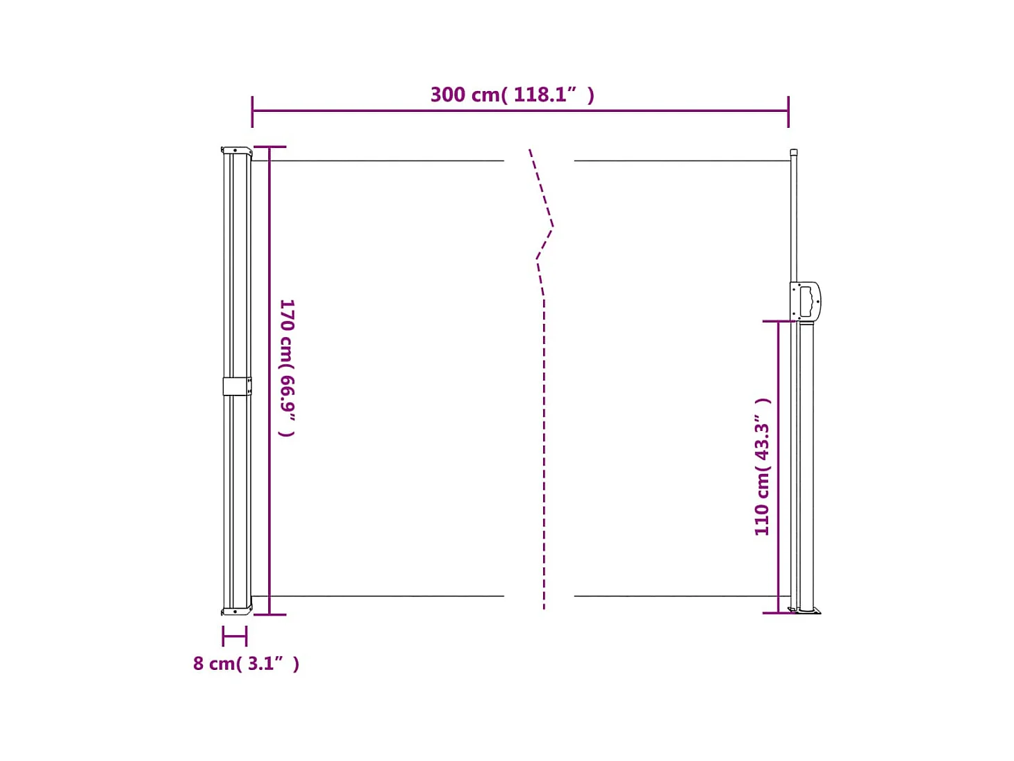 Toldo lateral retráctil verde oscuro 170x300 cm
