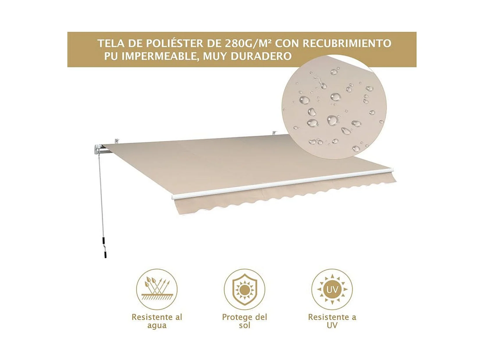 Toldo manual retráctil beige 400x120x280 cm Outsunny