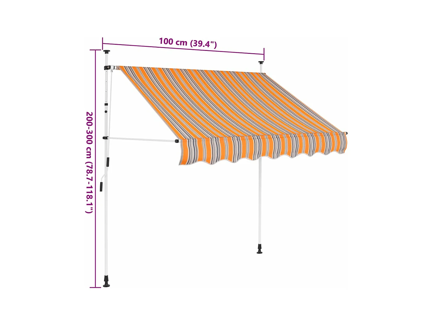 Toldo manual retráctil amarillo y azul a rayas 100 cm