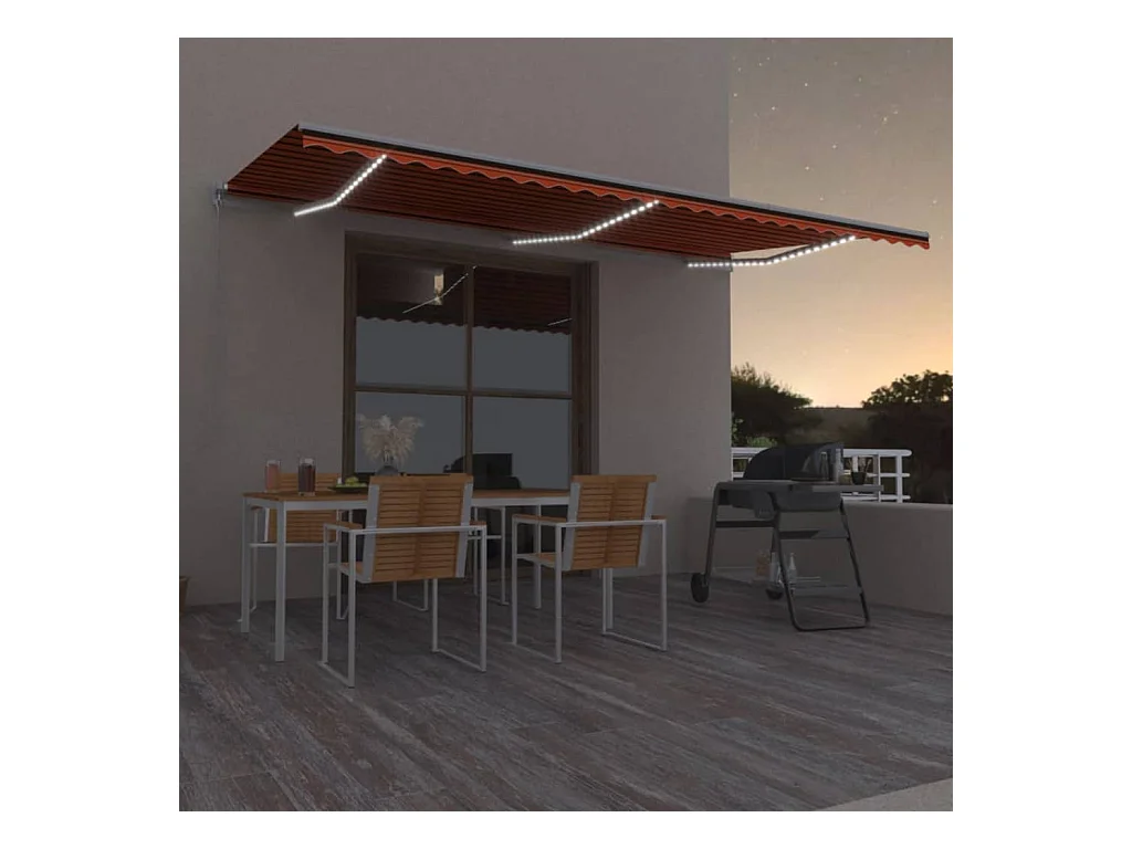Toldo manual retráctil con luz LED naranja y marrón 600x300 cm